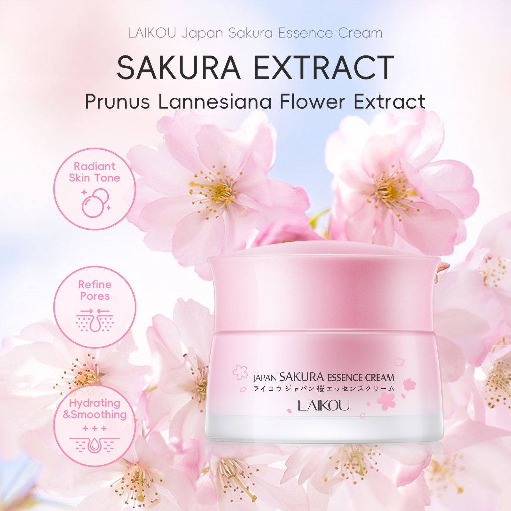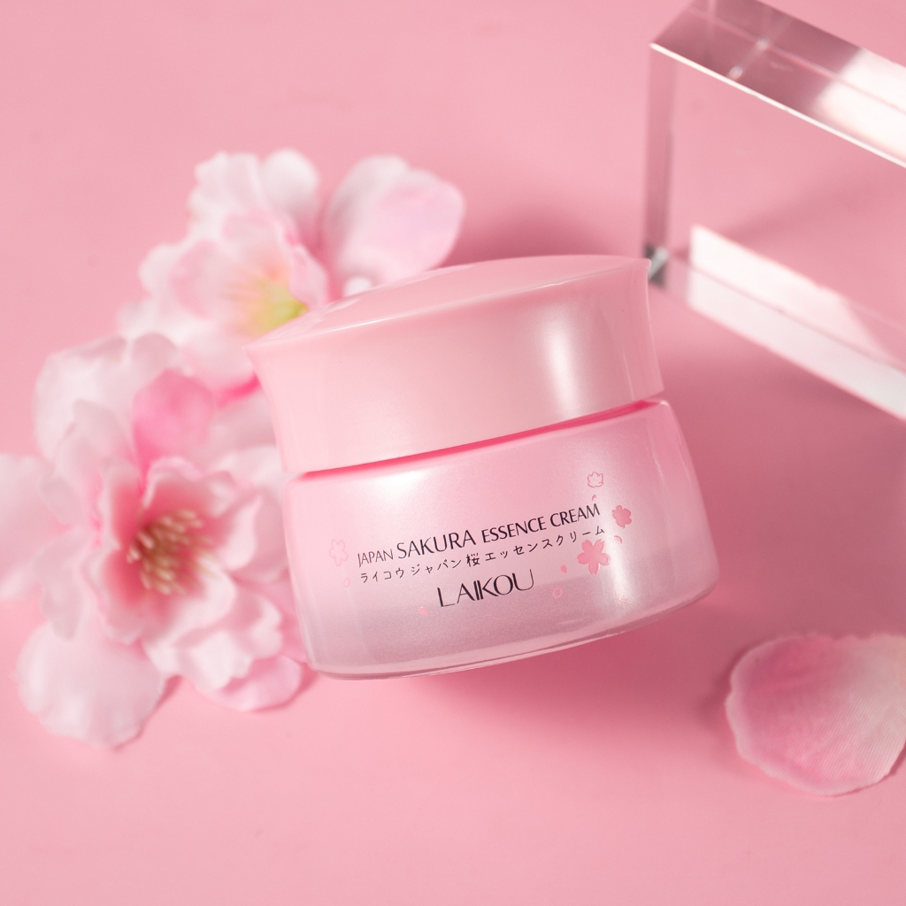 LAIKOU Japão Sakura Essência Creme Vidro Jar Embalagemhidratante Mesmo Tom De Pele Textura Lisa Da 50g