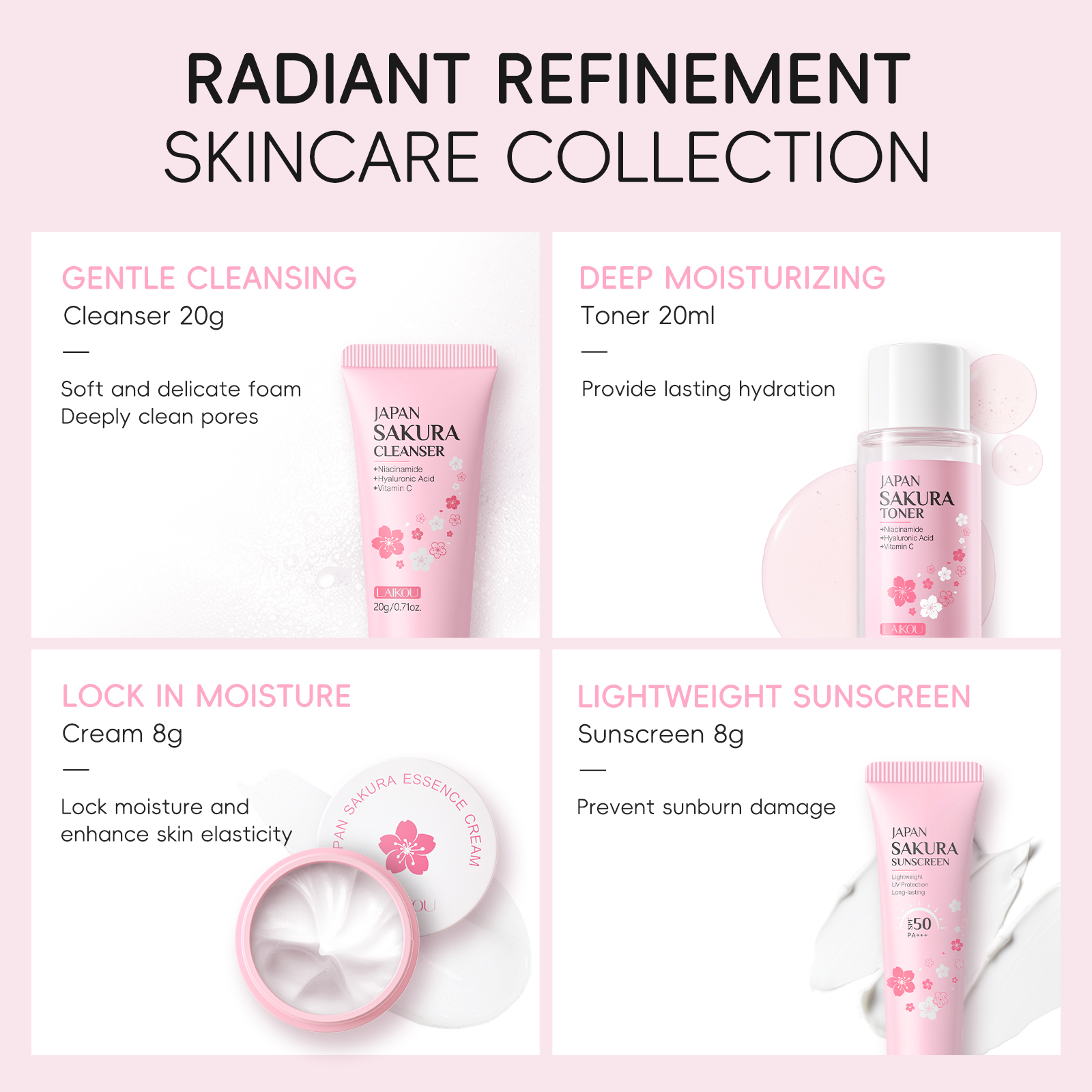 LAIKOU Japão Sakura Pacote de Cuidados com a Pele Viagem Correção de Tom e Hidratação 4 Itens