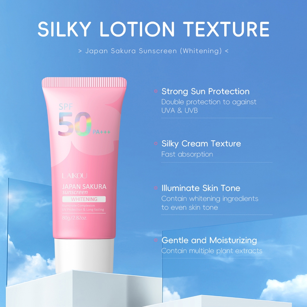 LAIKOU Japão Sakura Protetor Solar 80g Proteção UV SPF 50 PA + + Hidratante De Longa Duração Mesmo Tom De Pele Preven Lu
