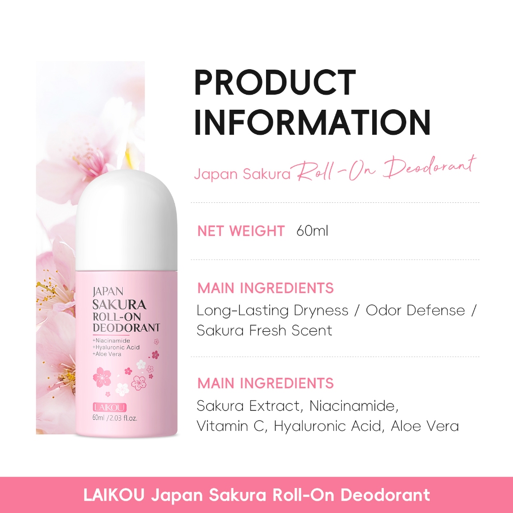 LAIKOU Japão Sakura Roll-on Desodorante 60ml Secagem De Longa Duração Odor Defesa Fresco O Dia Todo