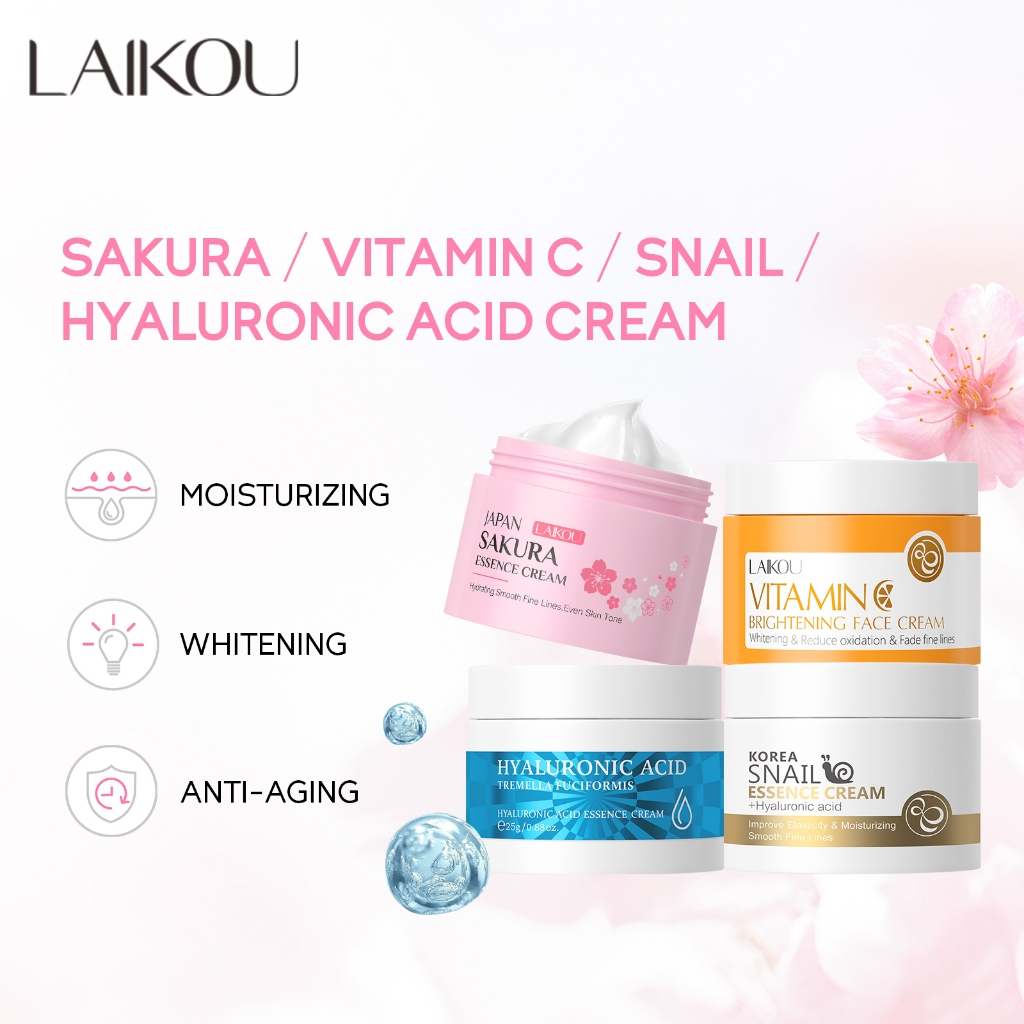 LAIKOU Sakura/Vitamina C/Ácido Hialurônico/Essência De Caracol Creme Facial Reduz Rugas Manchas Hidratante Cuidado 25g