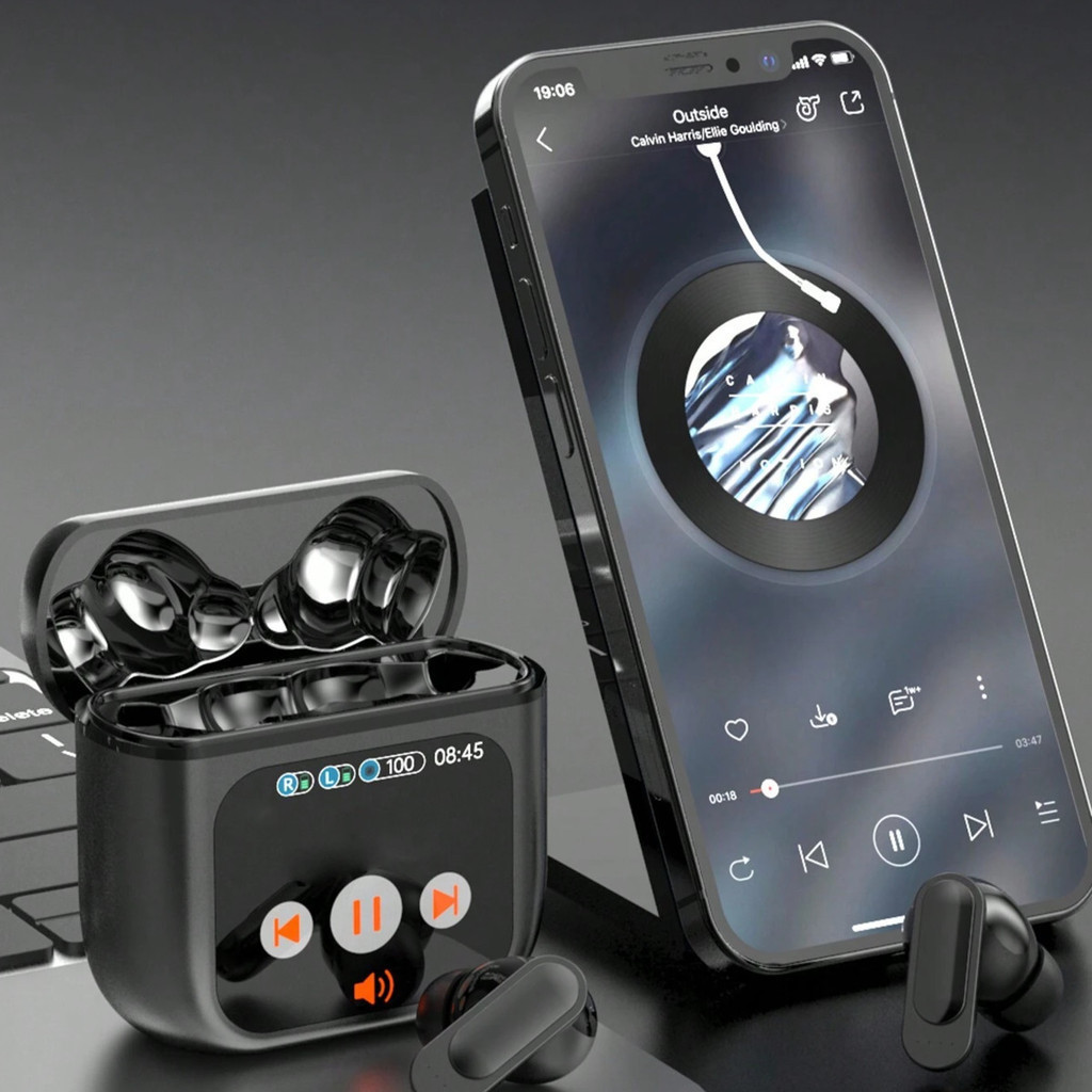 LCD Touch Screen Cancelamento de Ruído Earbuds Som Mini Stereo Wireless BT Fone de ouvido