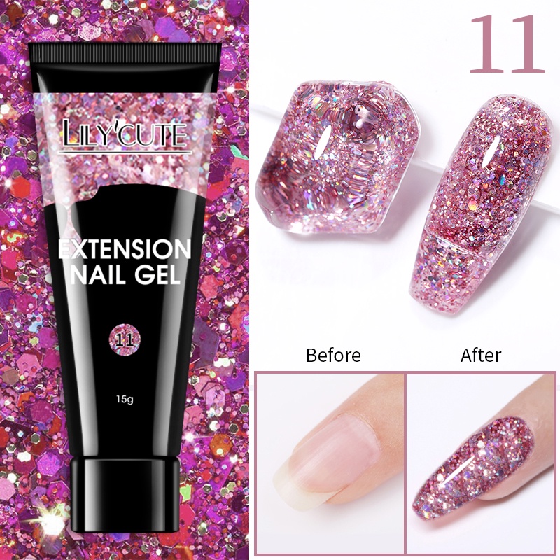 LILYCUTE 15ml Glitter Acrílico Gel Extensão Do Dedo Prata Rosa Prego Embeber Fora Verniz Da Arte Manicure