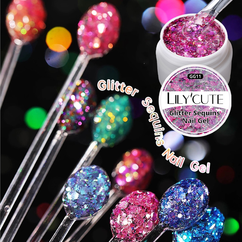 LILYCUTE 7ml Glitter Lantejoulas Gel Polonês Brilhante Nail Art Verniz UV LED Soak off Suprimentos Manicure