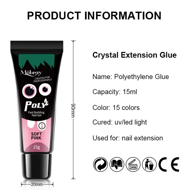 LIMEGIRL Mobray Poly Nail Gel Set UV Transparente/Rosa Acrílico Extensão De Dedo De Construção Rápida Soak Off Polonês C
