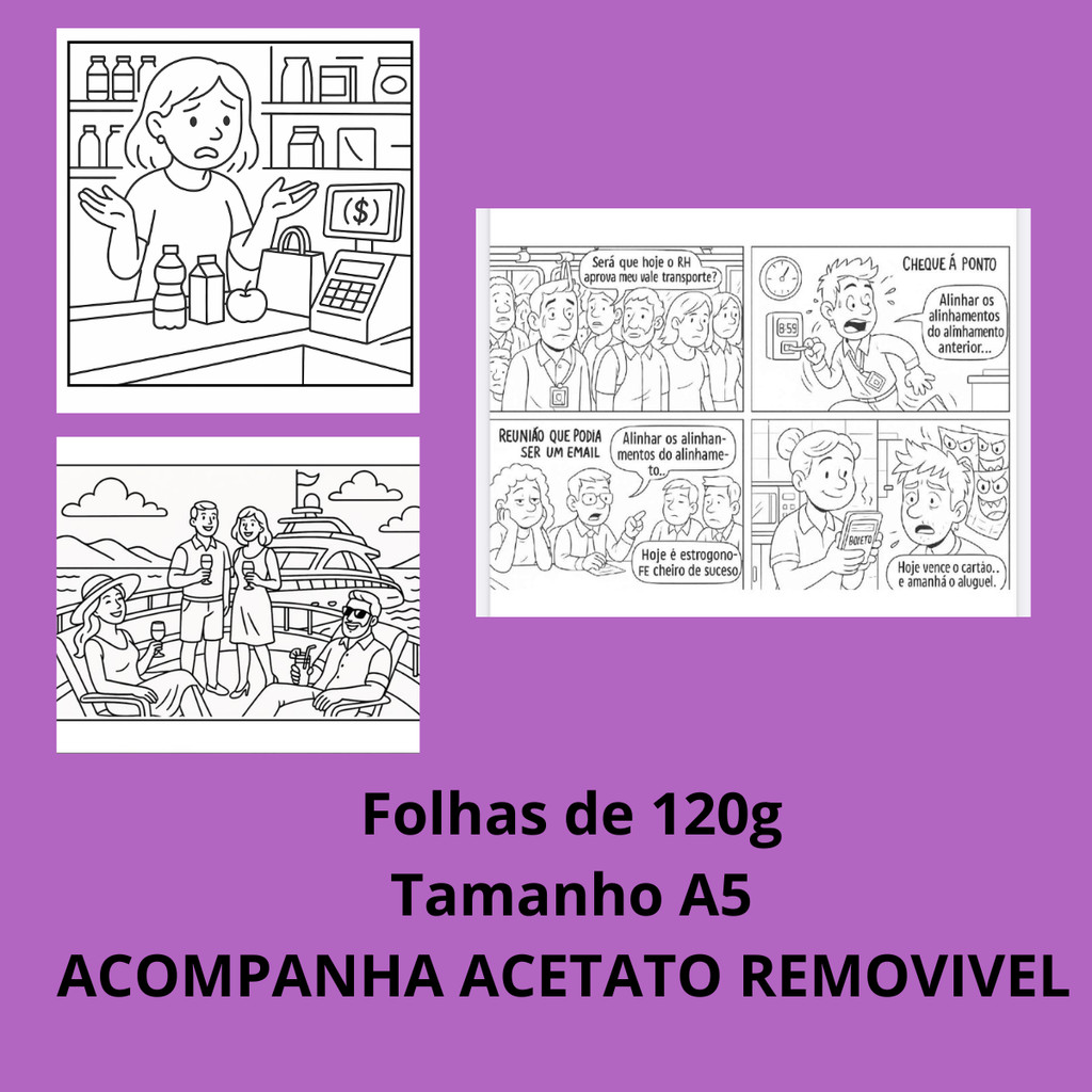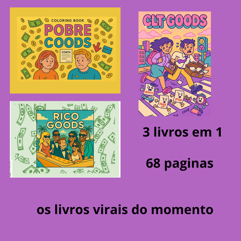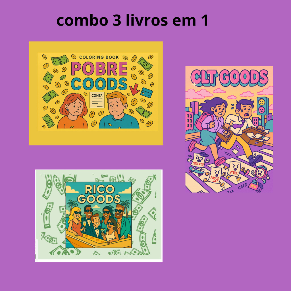 LIVRO DE COLORIR 3 EM 1 PARA ADULTOS POBRE/ RICO/ CLT GOODS