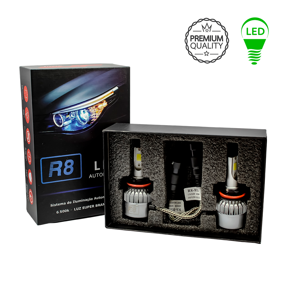 Lampada Led H4 R8 6500k Led Automotivo Com Coller 12/24v 50w