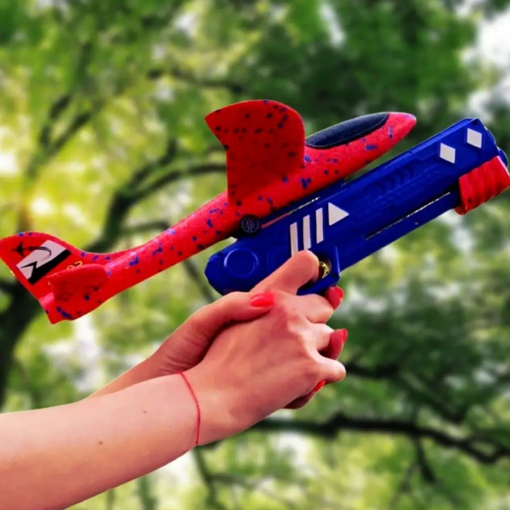 Lançador de Avião Catapulta Brinquedo Planador Pistola Infantil Tiro ao Alvo
