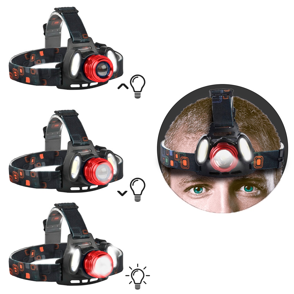 Lanterna De Cabeca De Led Potente 3 Focos Zoom Recarregavel