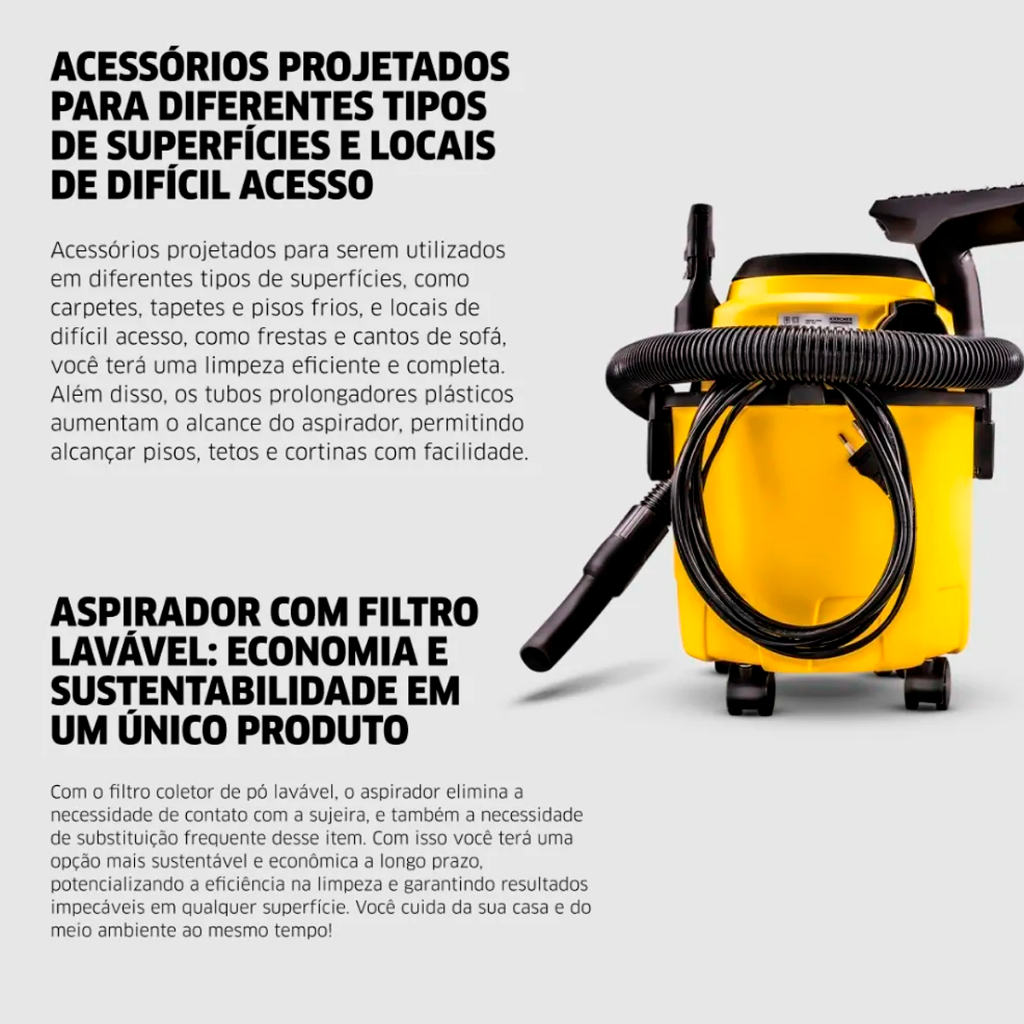 Lava Jato Rápido Lavadora Alta Pressão Portátil + Aspirador Pó Água WDL1 KARCHER 220V Profissional