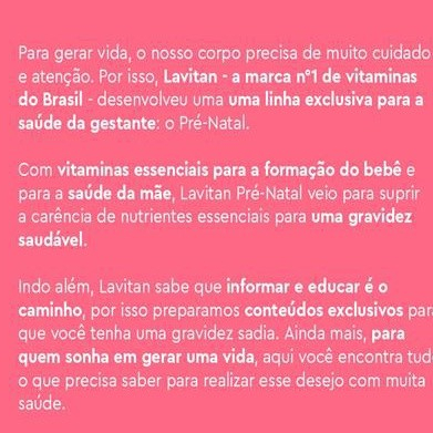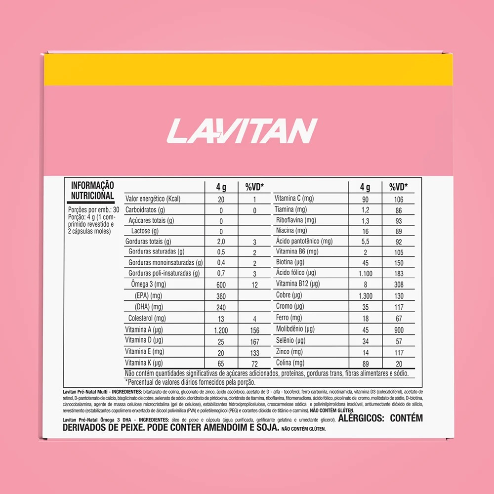 Lavitan Pré Natal Multivitamínico Para Saúde da Mamãe do Bebê 30 Comp.