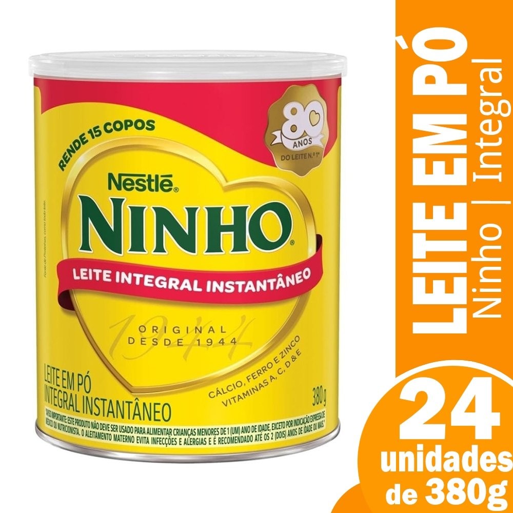 Leite em Pó Ninho Integral Instantâneo 380g - Embalagem com 24 Unidades