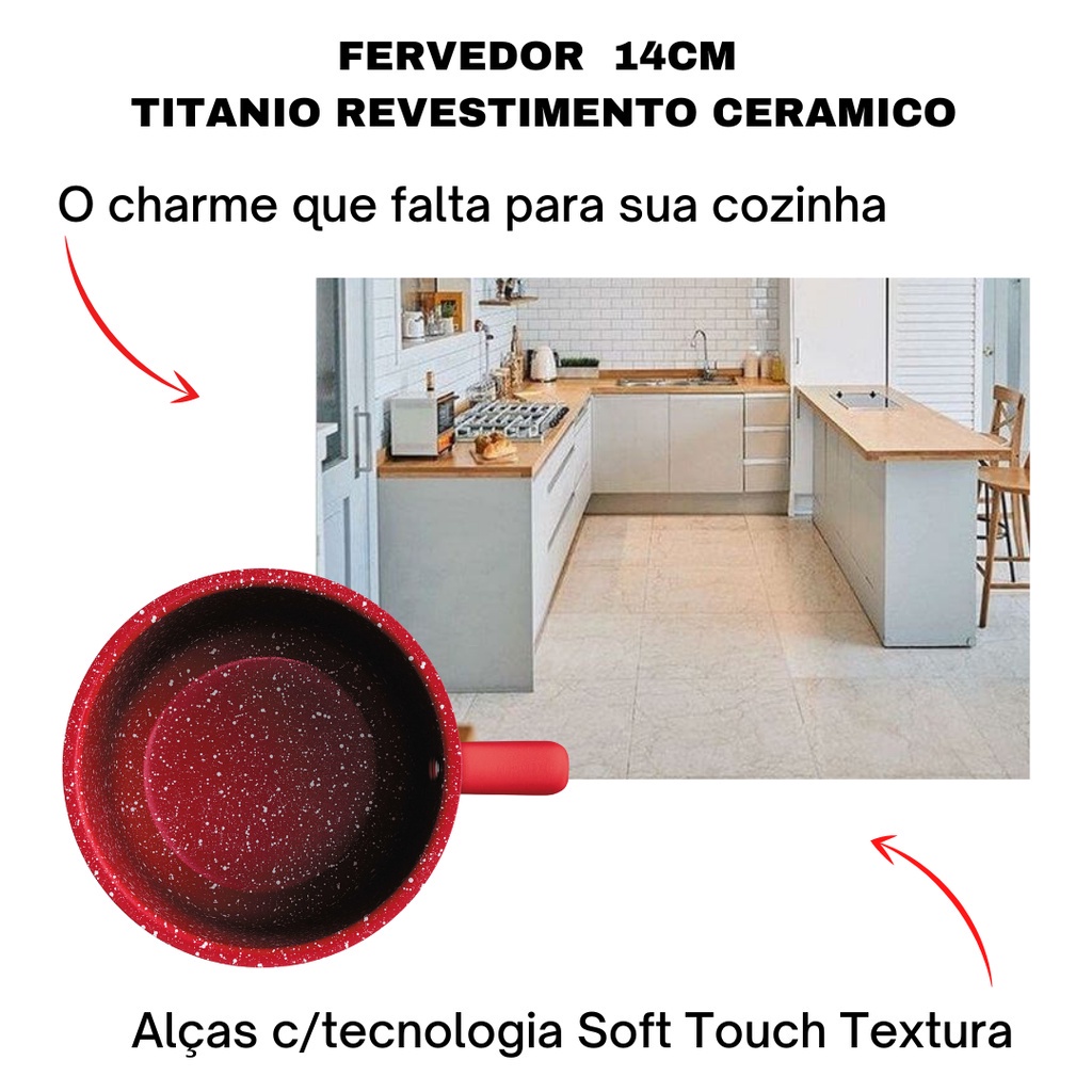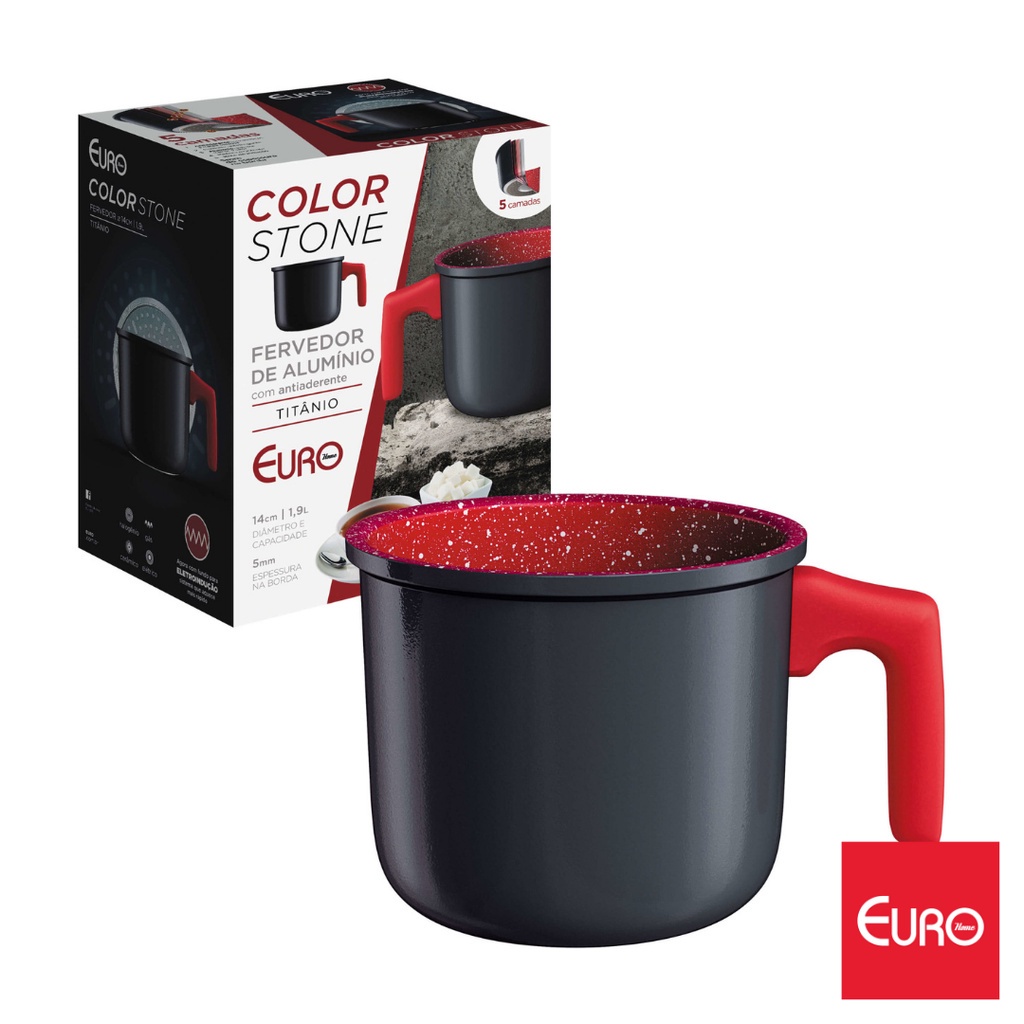 Leiteira Fervedor Caneco Antiaderente Ceramica 14cm 1,9 Litros Cooktop Fogão Indução Colorstone Titanio
