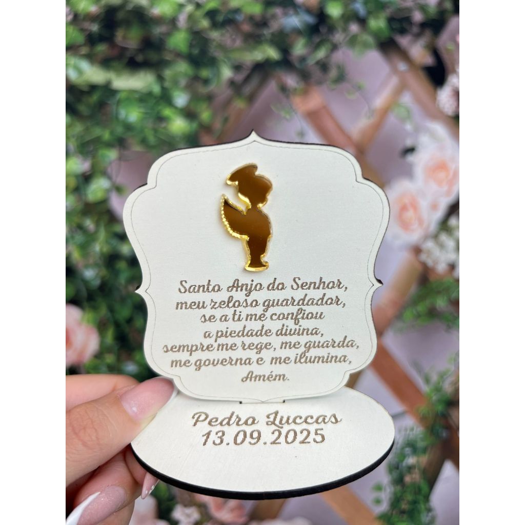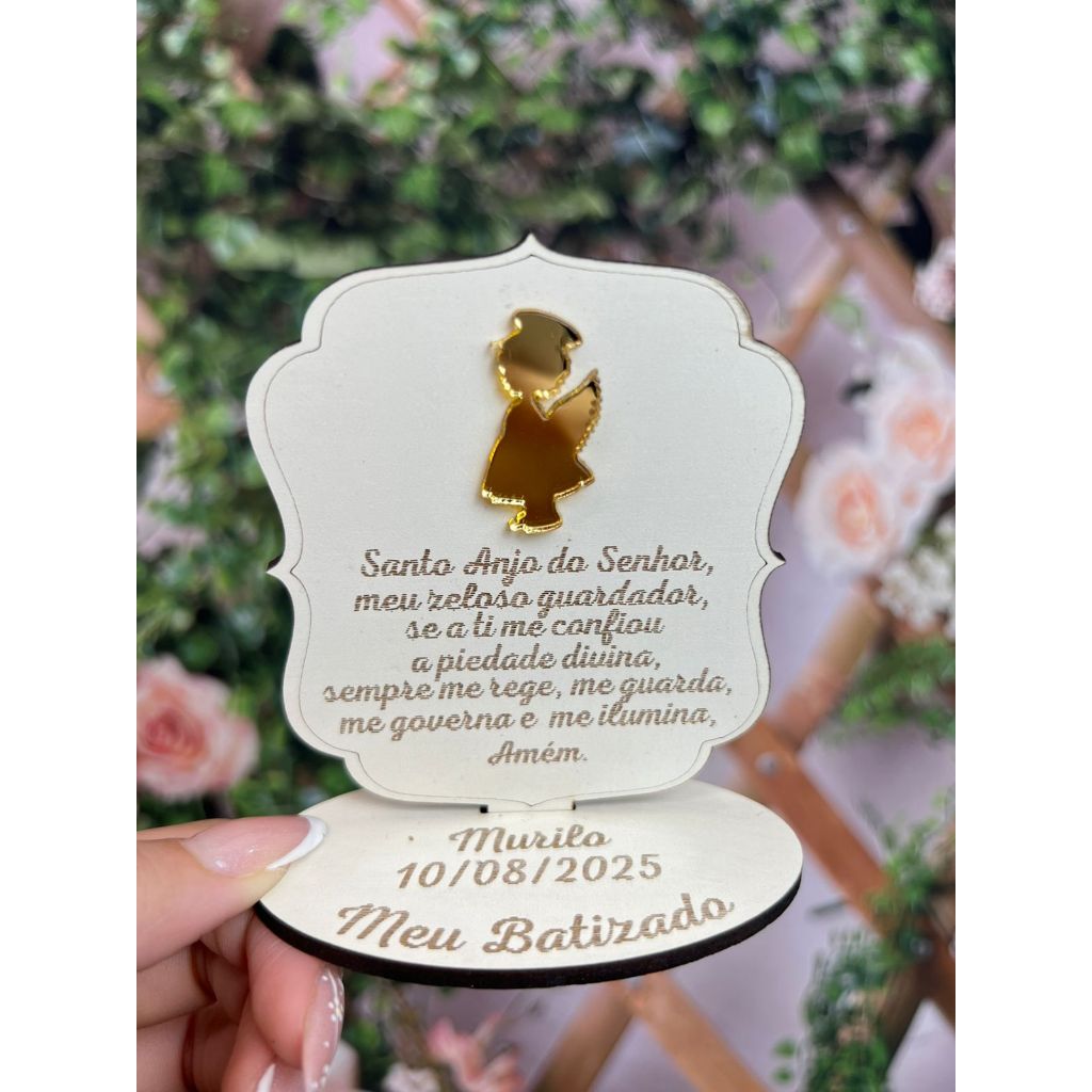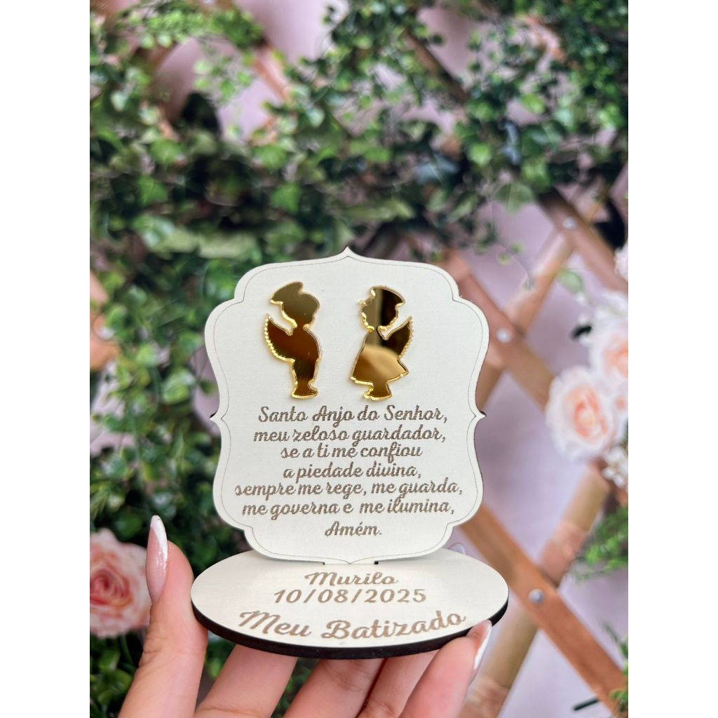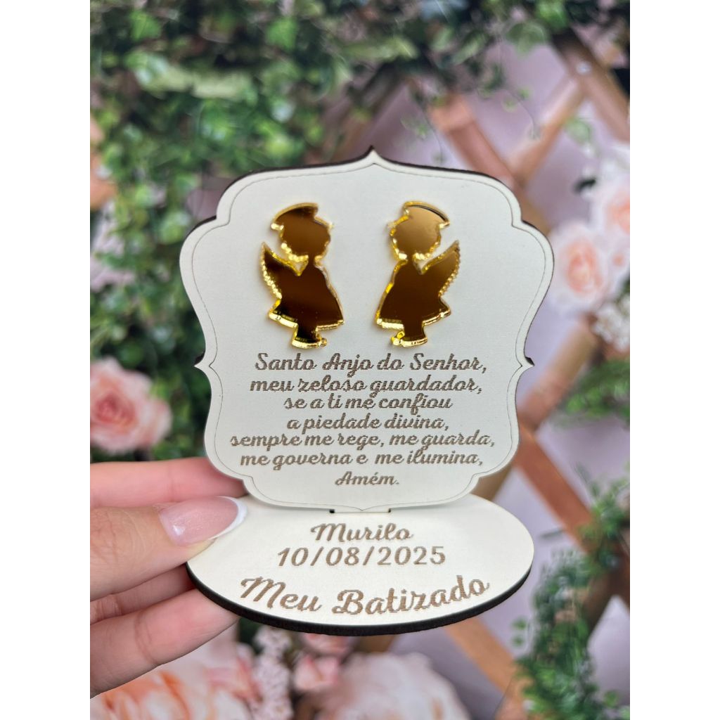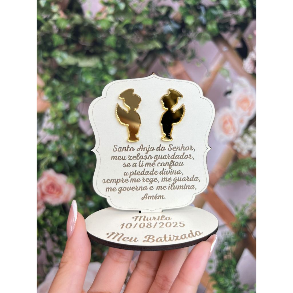 Lembrança Batizado Anjo MDF Branco com Acrilico Espelhado