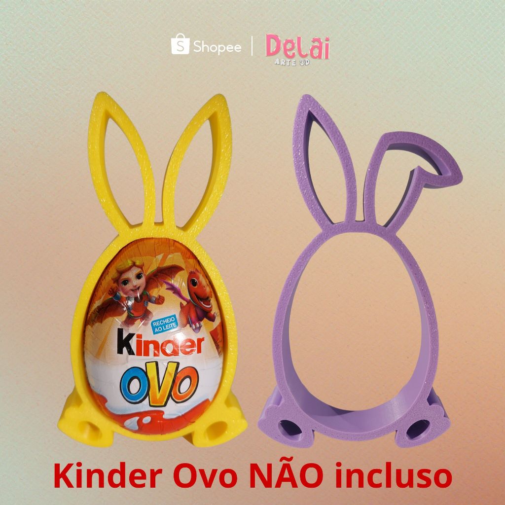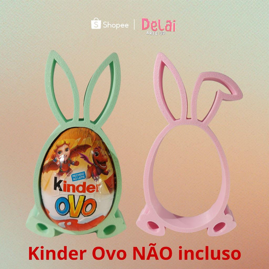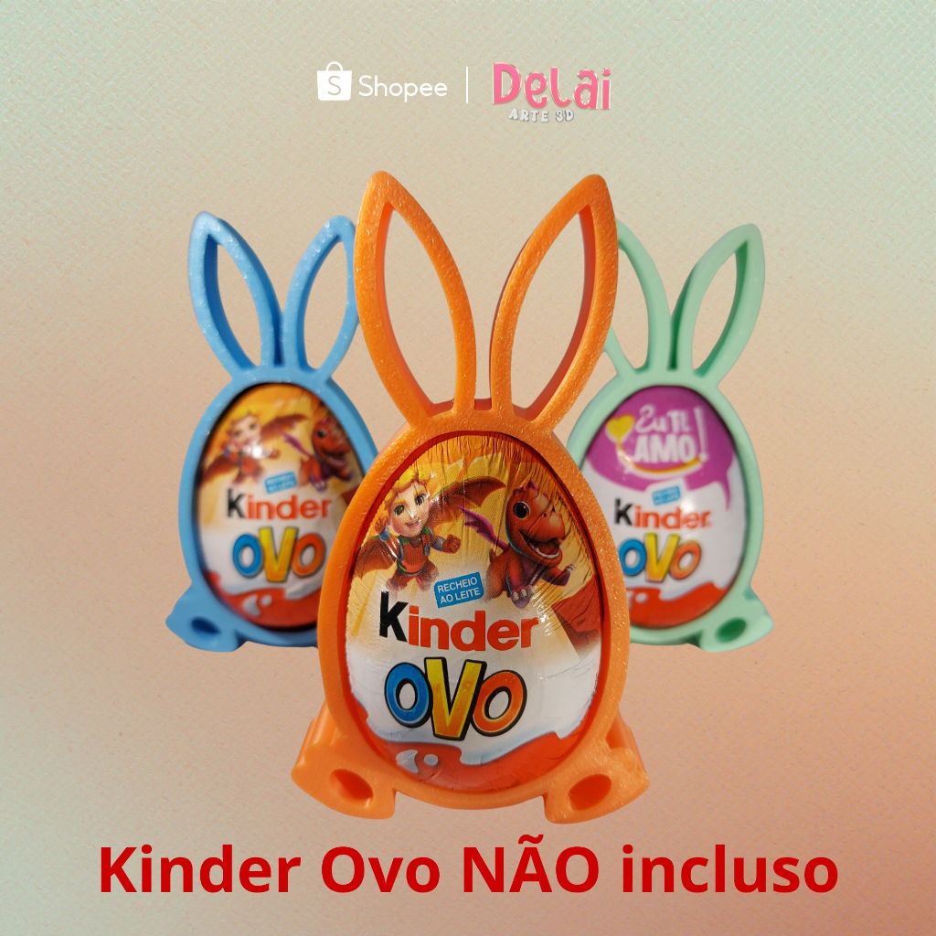 Lembrancinha de Páscoa Porta Ovo Kinder Coelhinho Colorido 3D
