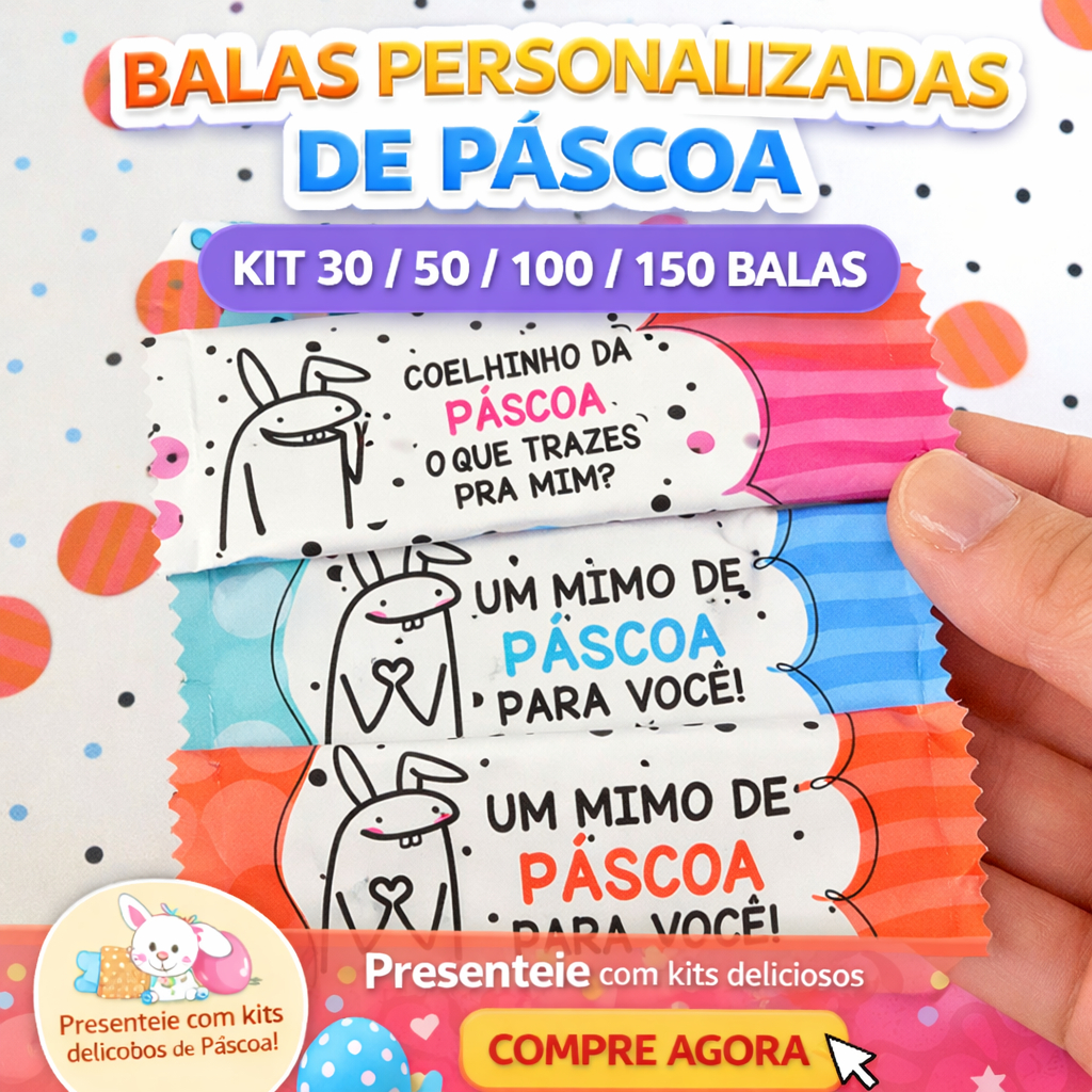 Lembrancinhas de Páscoa Personalizadas Divertida 30, 50 ou 100 Unidades | Balas para eventos Festas e empresas