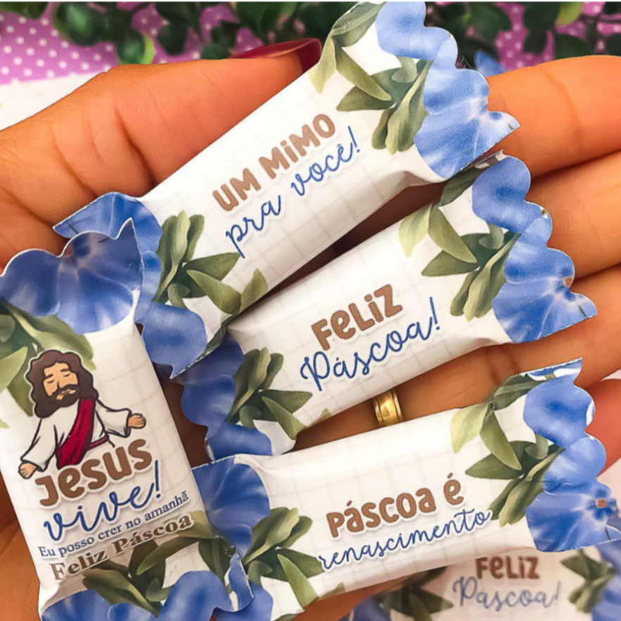 Lembrancinhas de Páscoa/Quaresma Personalizadas 30, 50 ou 100 Unidades | Balas para eventos em Igrejas/Festas e empresas