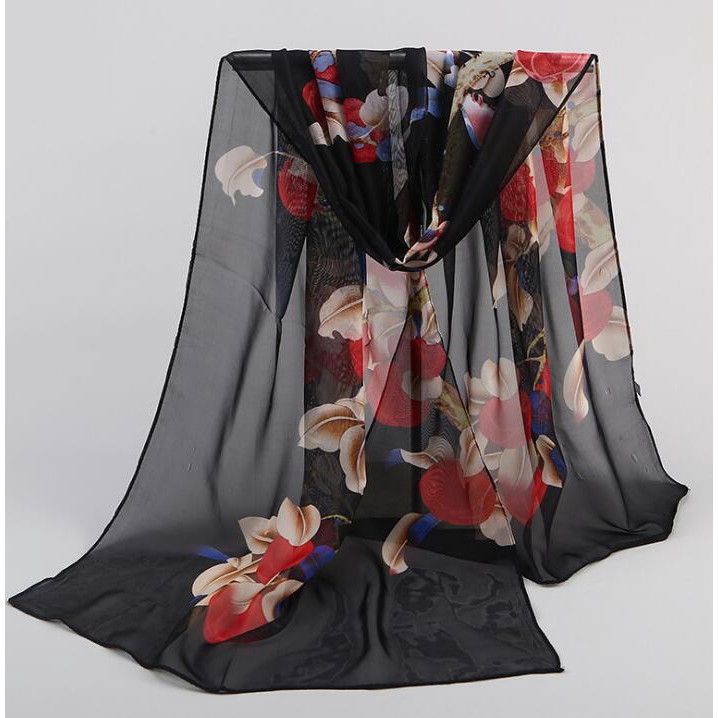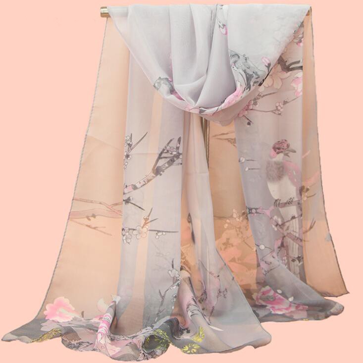 Lenço De Seda Feminino Com Chiffon Clássico Impressão 50cm X 155cm