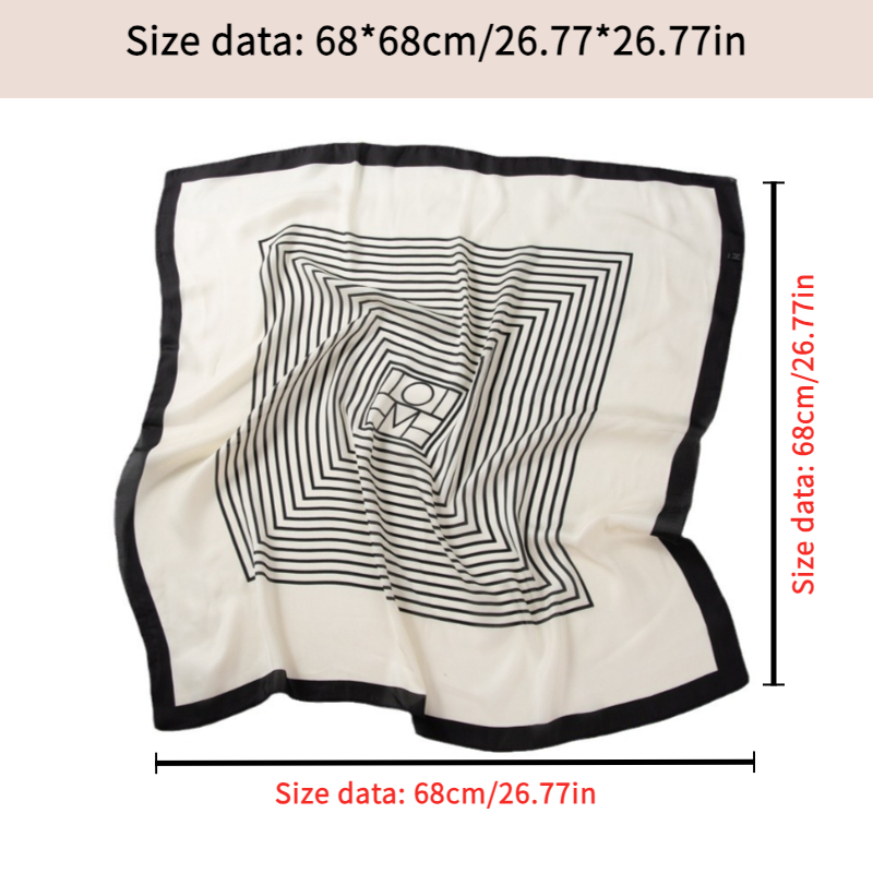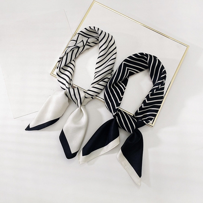 Lenço Quadrado Feminino Cetim Como Seda Preto Branco Listra Leve Proteção Solar De Pescoço À Prova De Vento