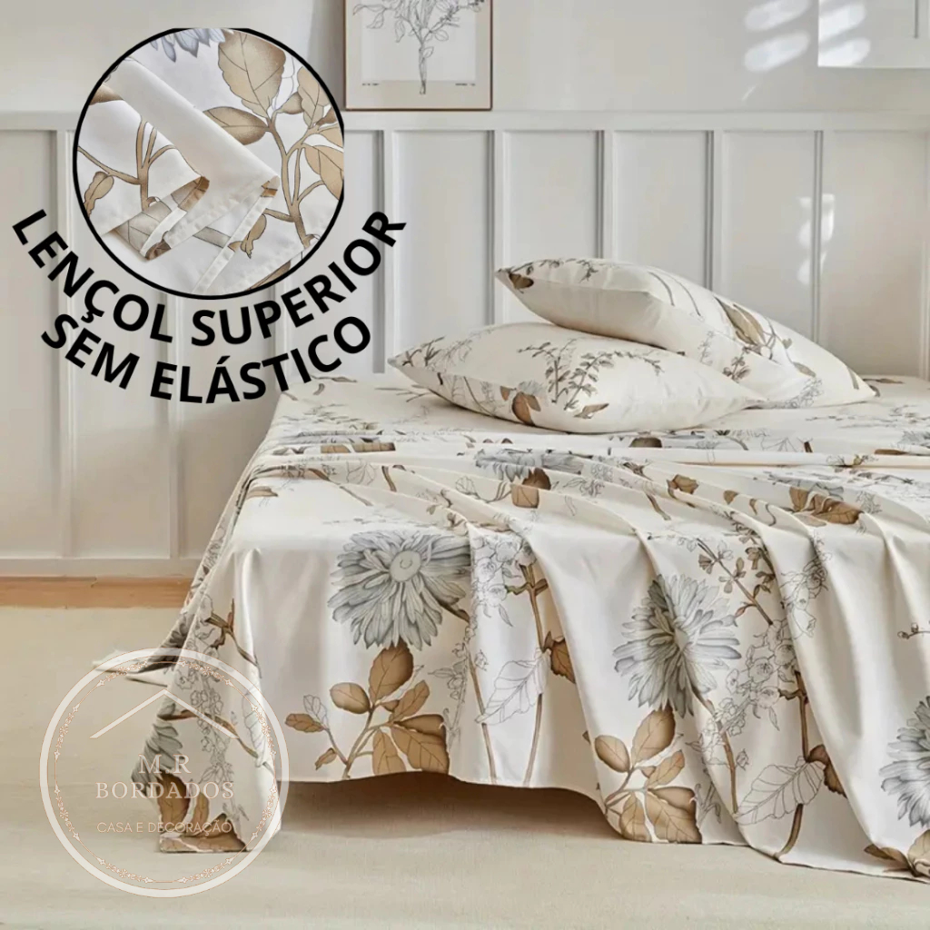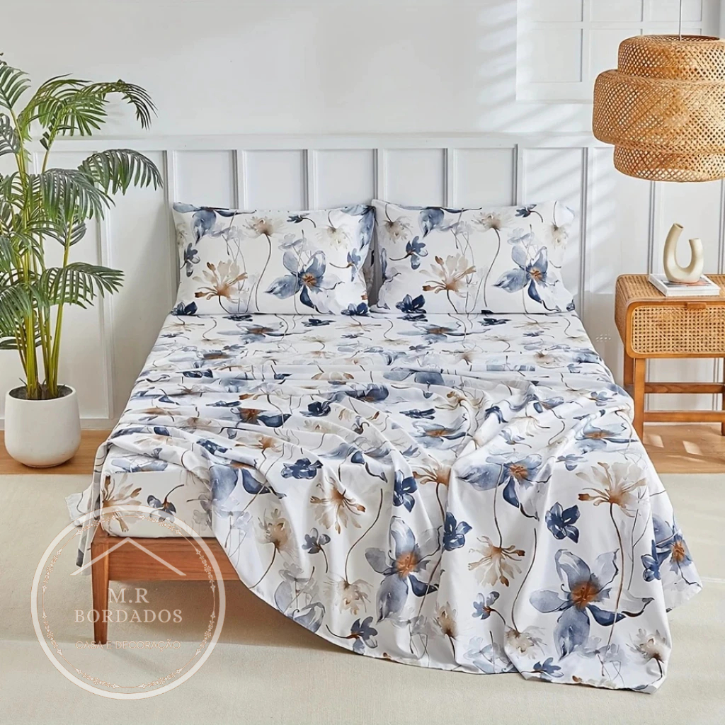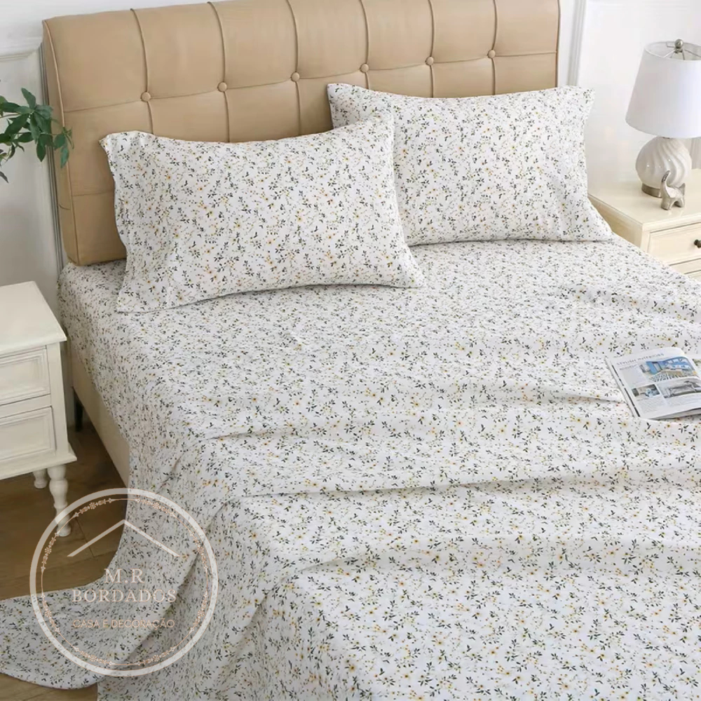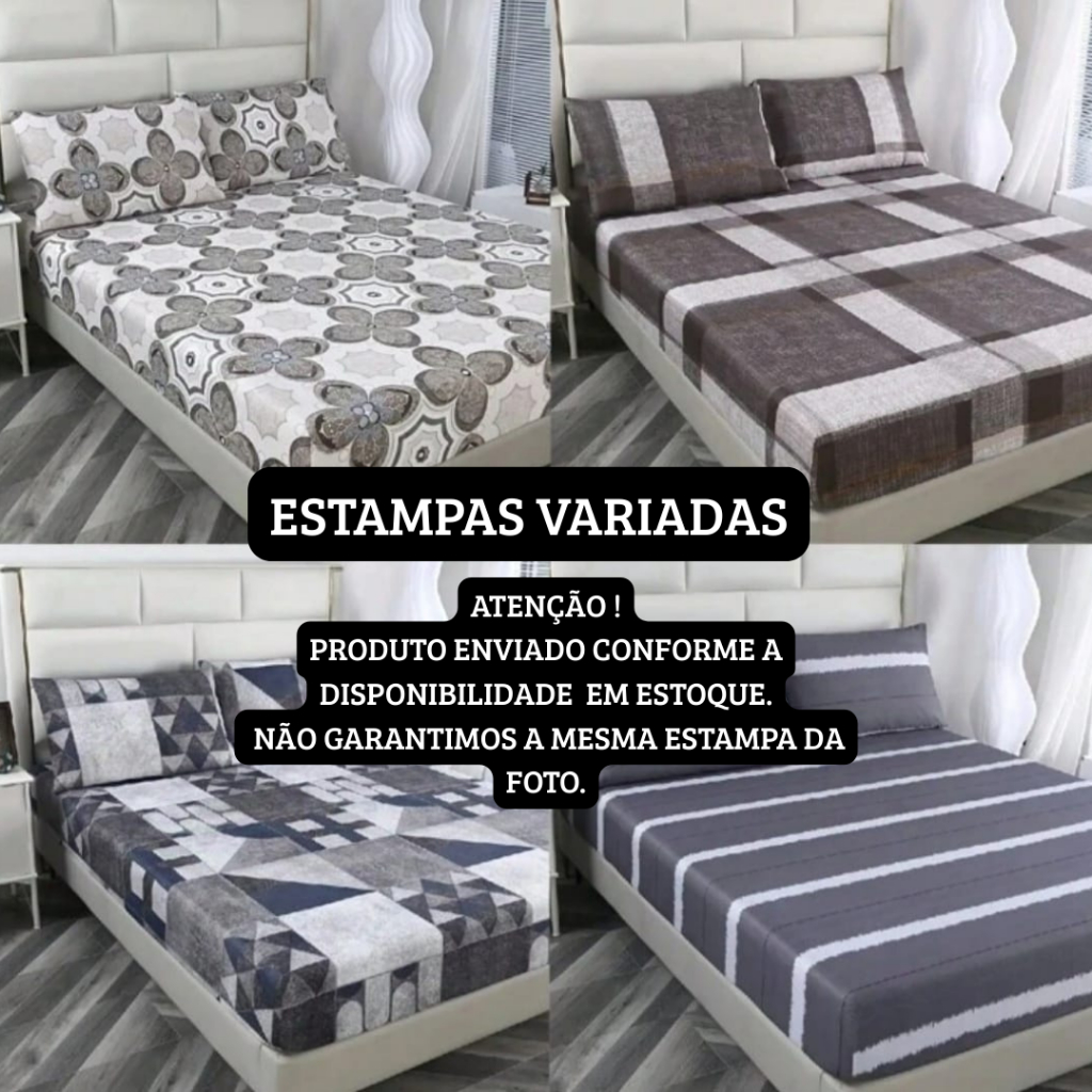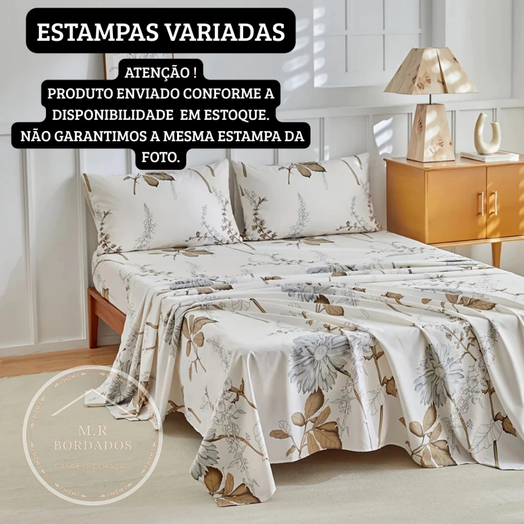 Lençol Casal 4 Peças Estampado Com Elastico.