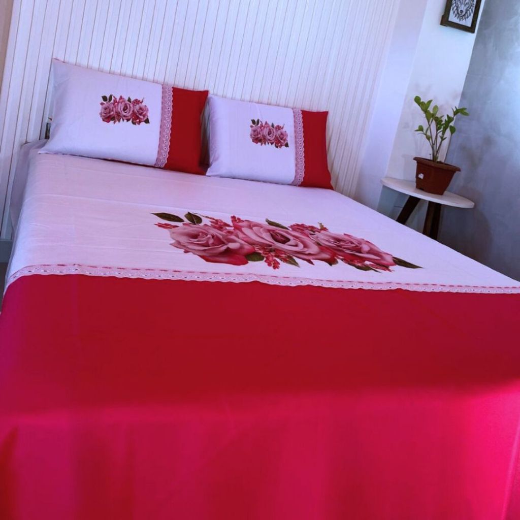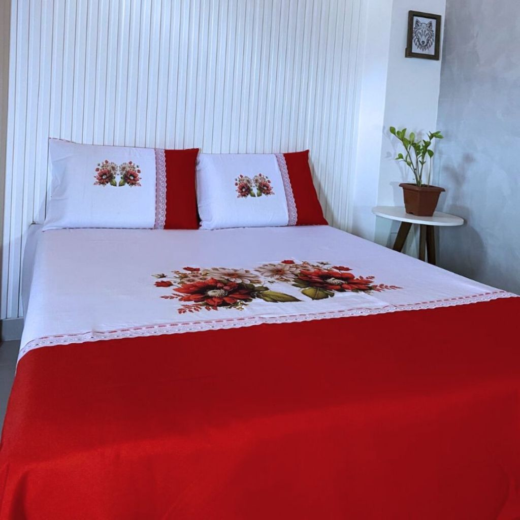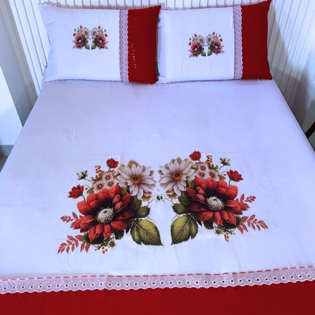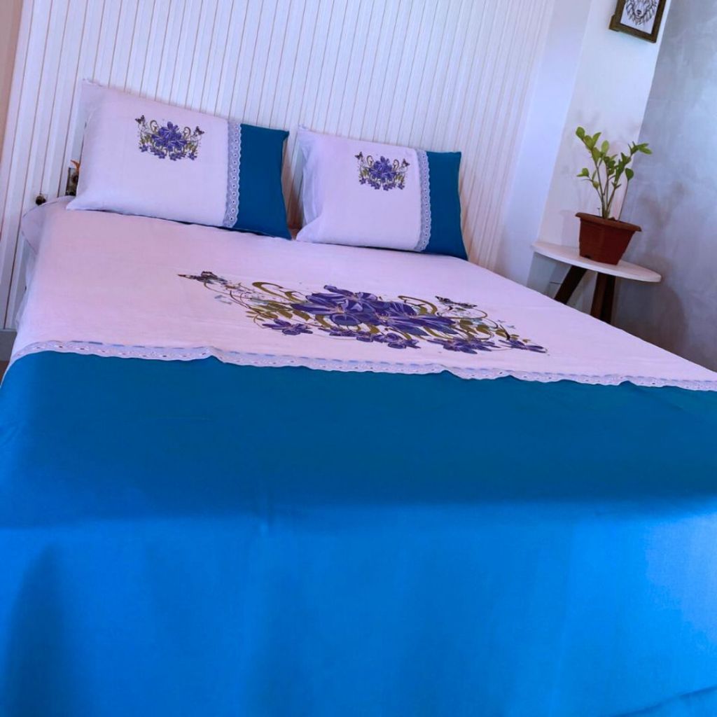 Lençol Casal Artesanal Pintado de Oxford com Fronhas - Sublimado