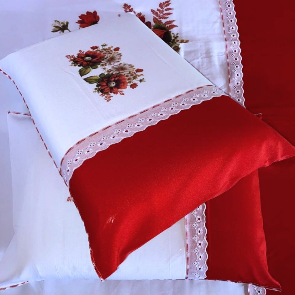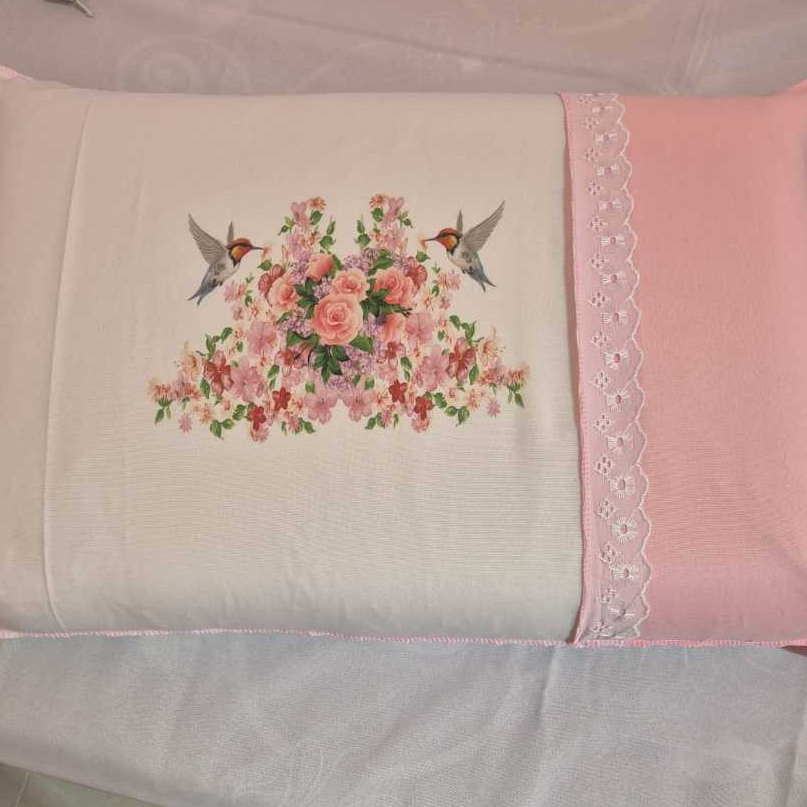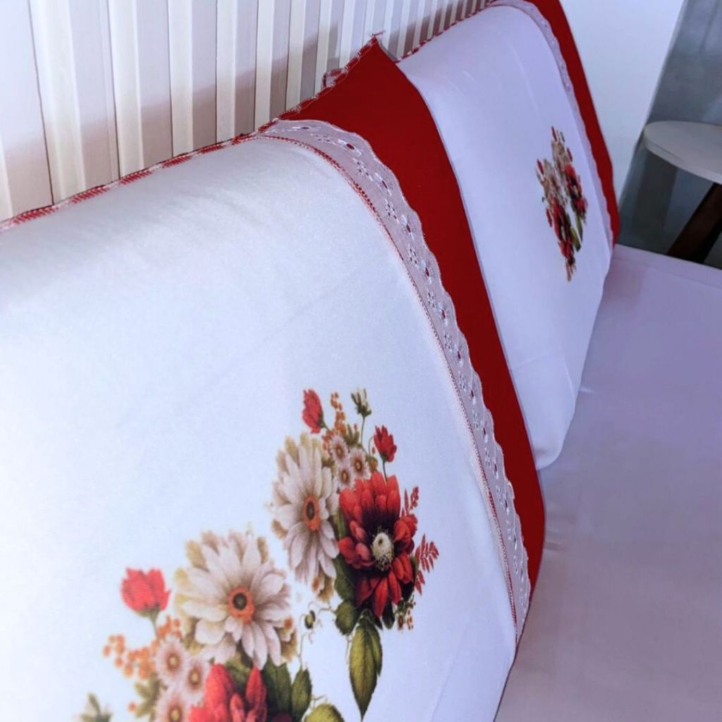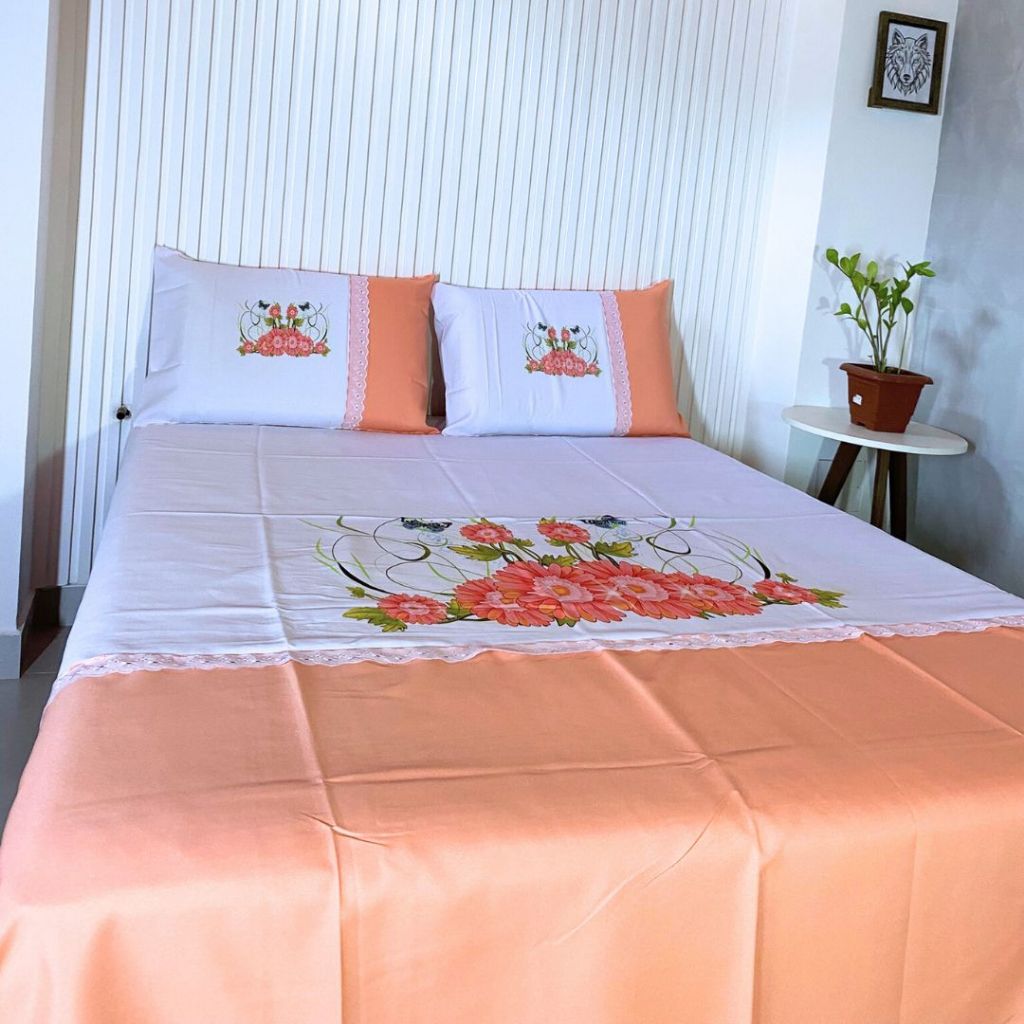 Lençol Casal Artesanal Pintado de Oxford com Fronhas - Sublimado