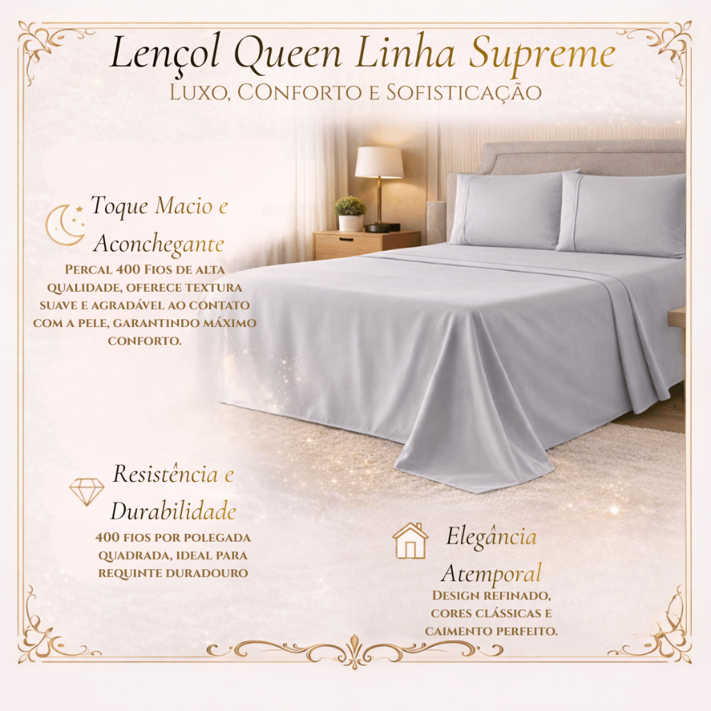 Lençol De Cobrir Queen Avulso Sem Elástico Percal 400 Fios Linha Supreme -Toque Macio