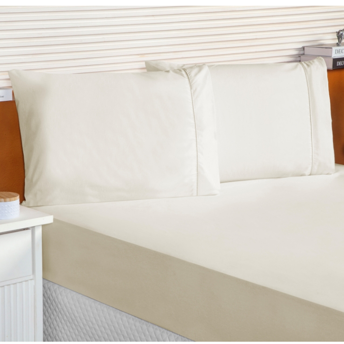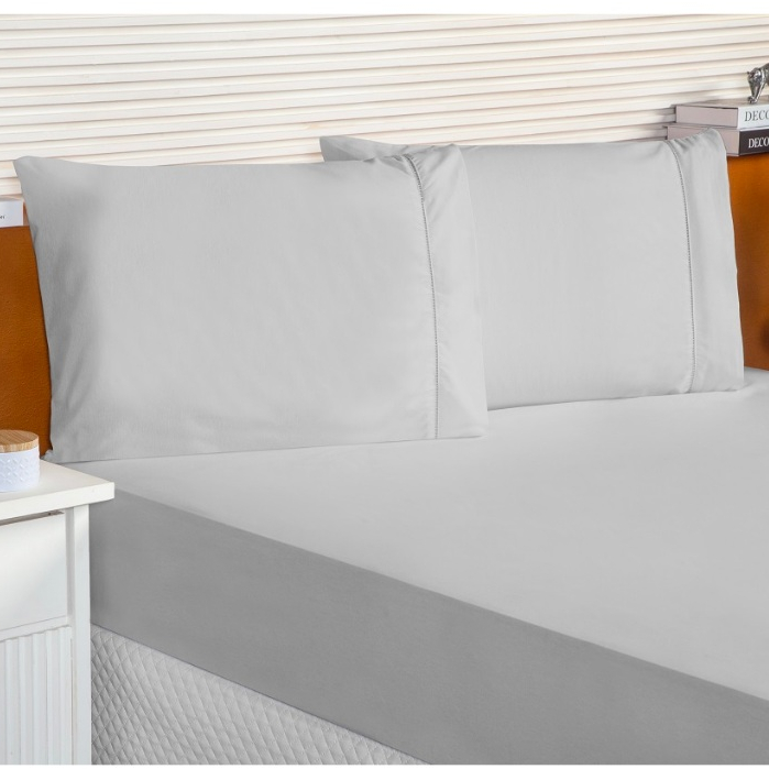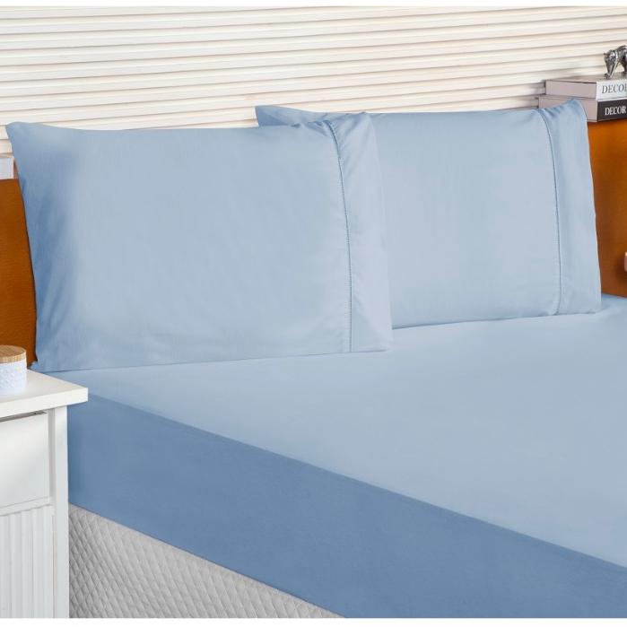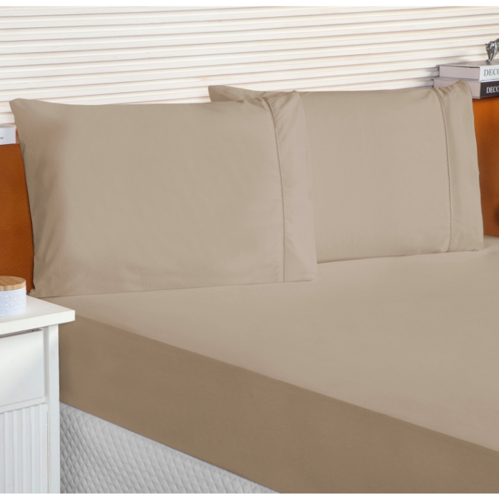 Lençol Queen 3 Peças 100% Algodão Jogo Roupa de Cama Casal 400 Fios Ponto Palito
