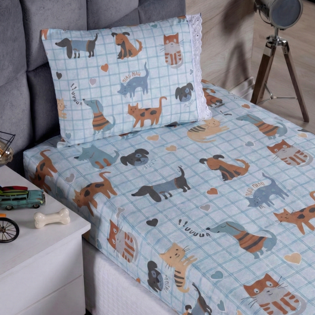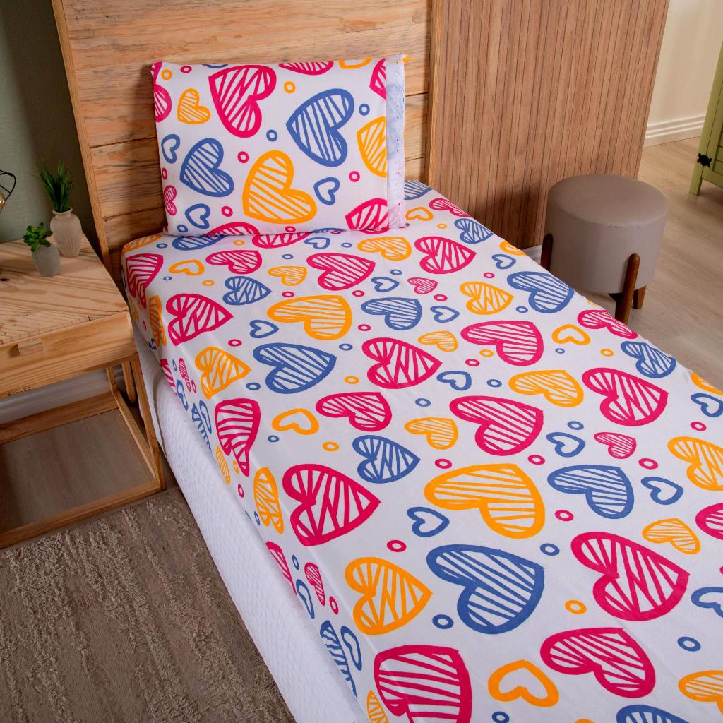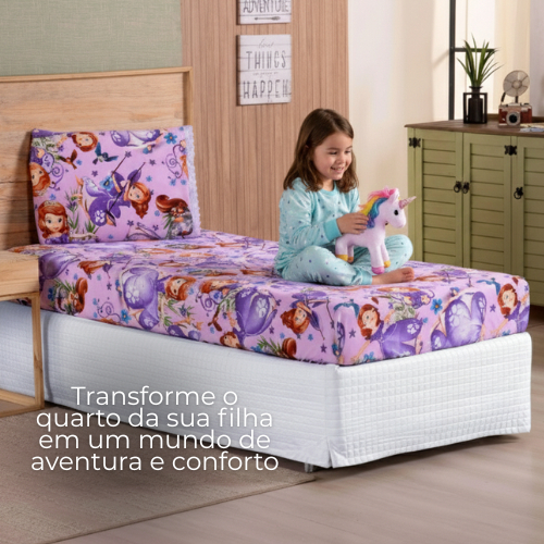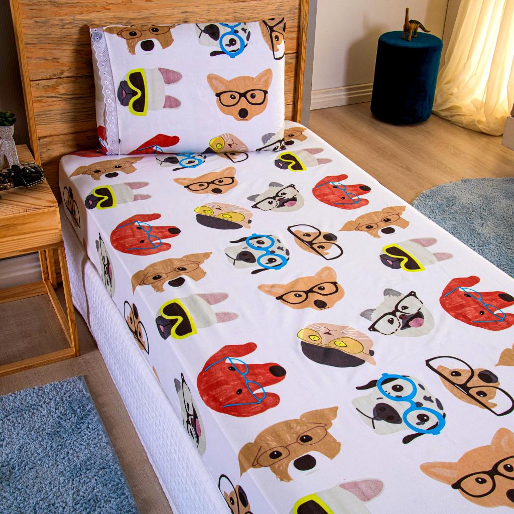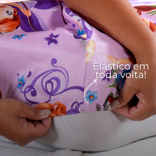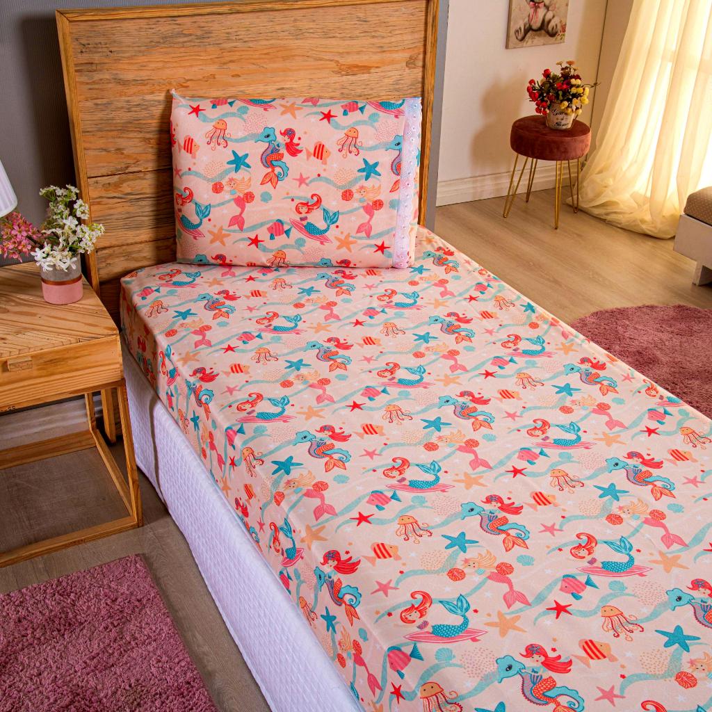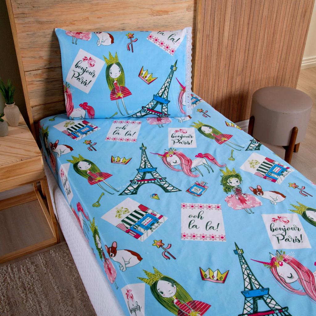 Lençol Solteiro 2 Peças Poliéster - Jogo de Cama Estampado Infantil Com Elástico Em toda Volta