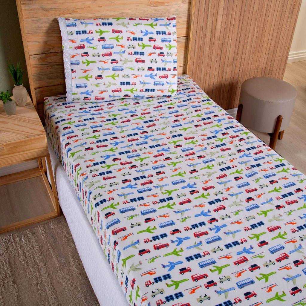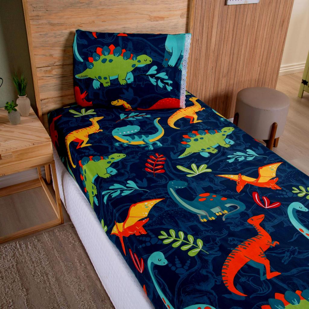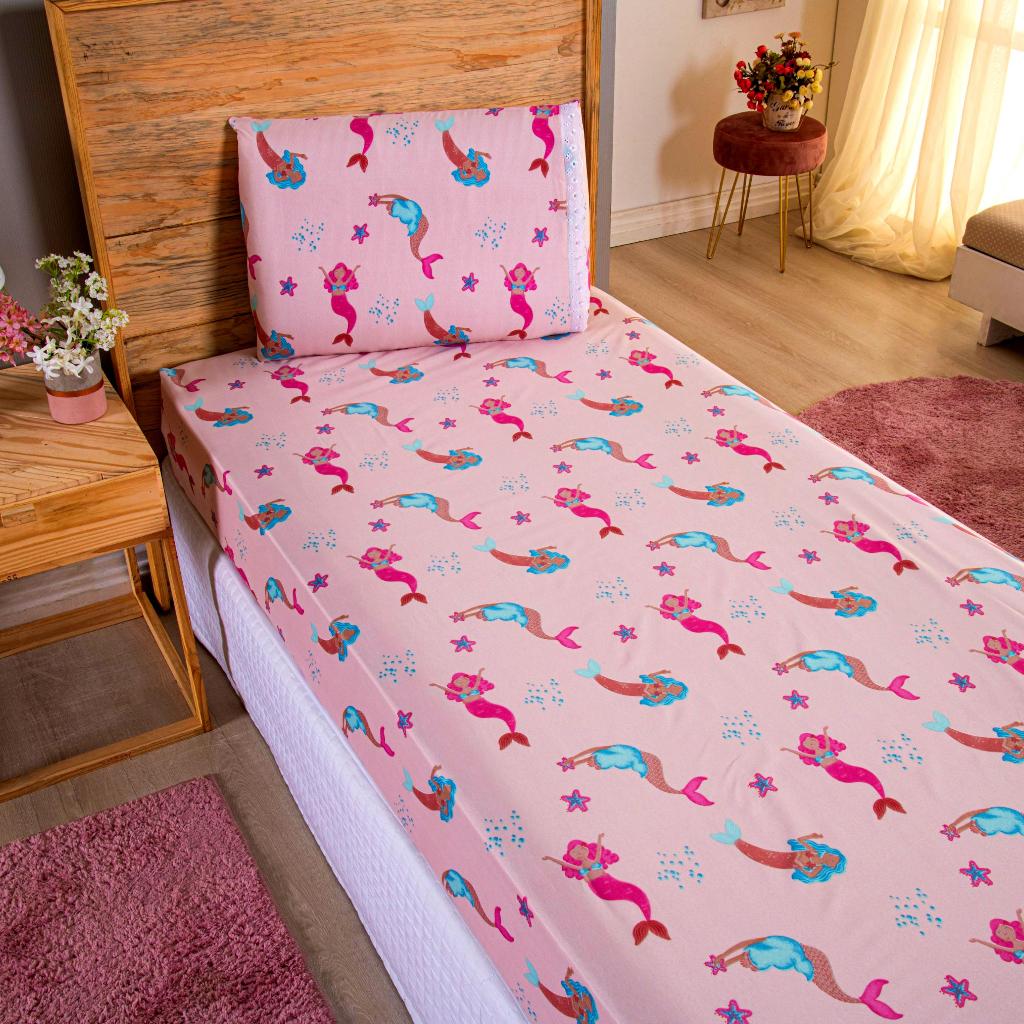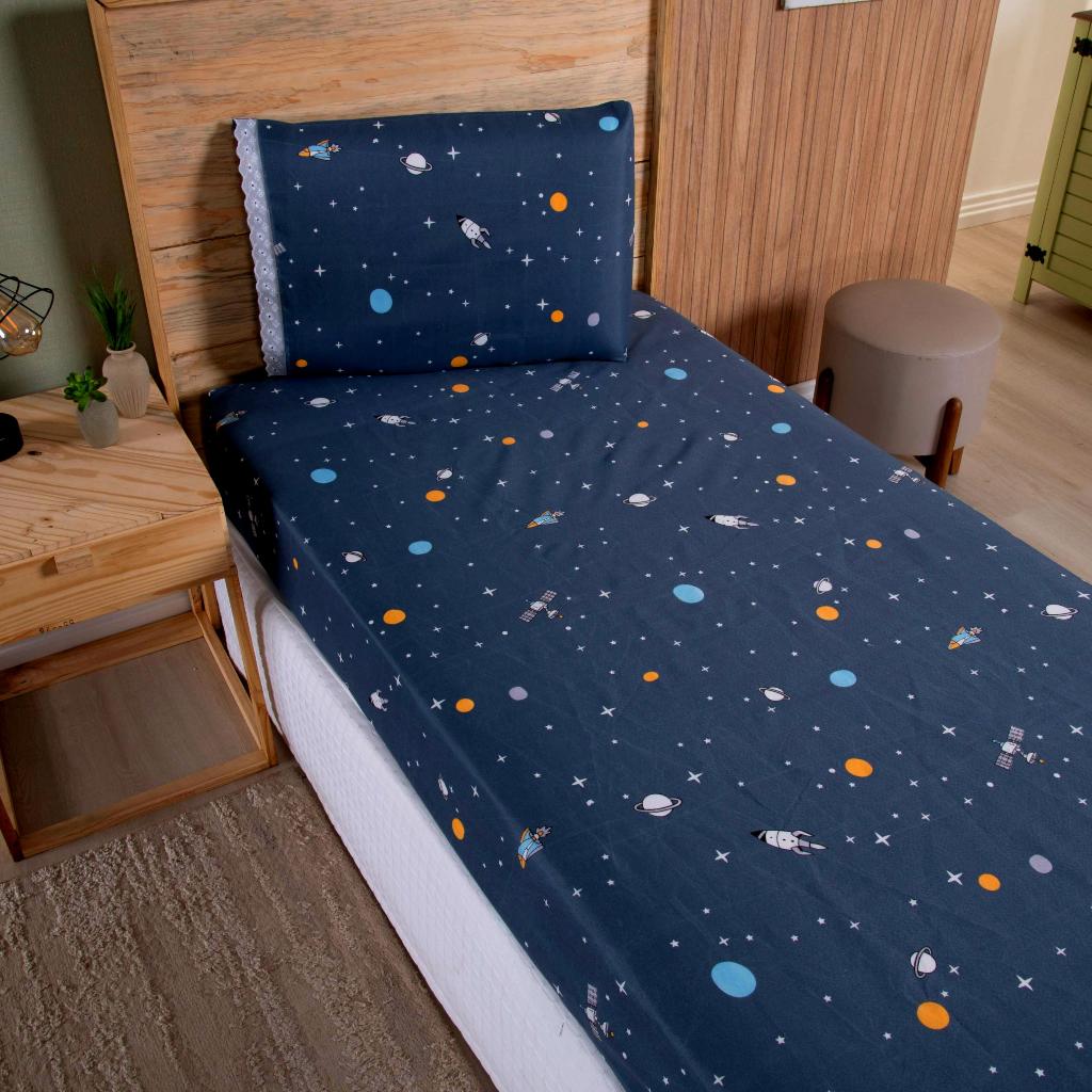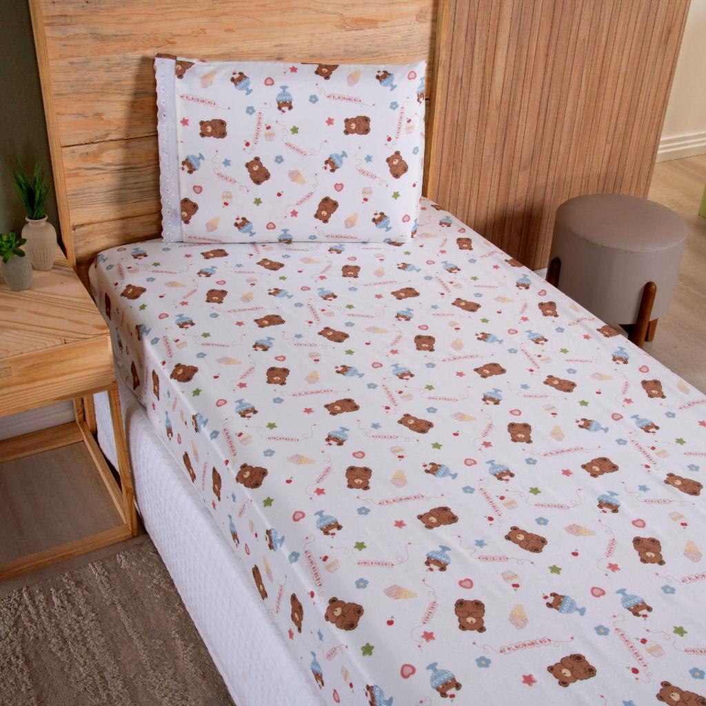 Lençol Solteiro 2 Peças Poliéster - Jogo de Cama Estampado Infantil Com Elástico Em toda Volta