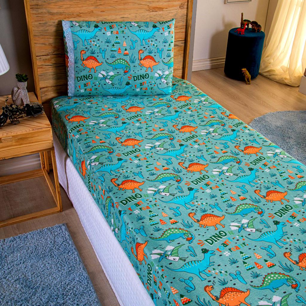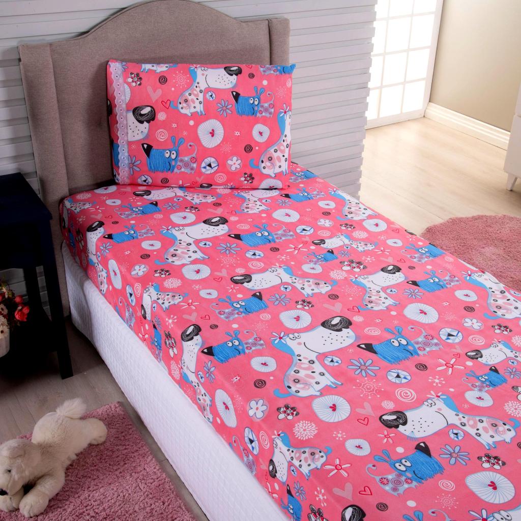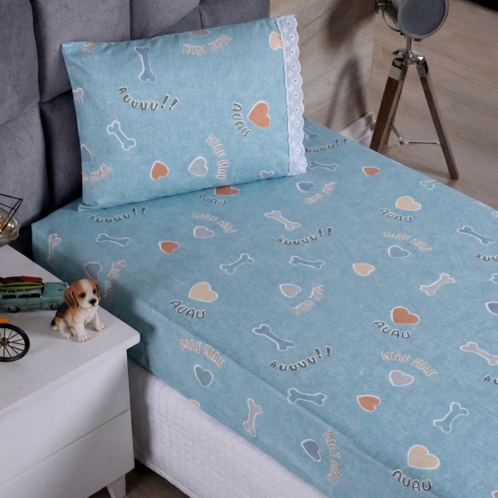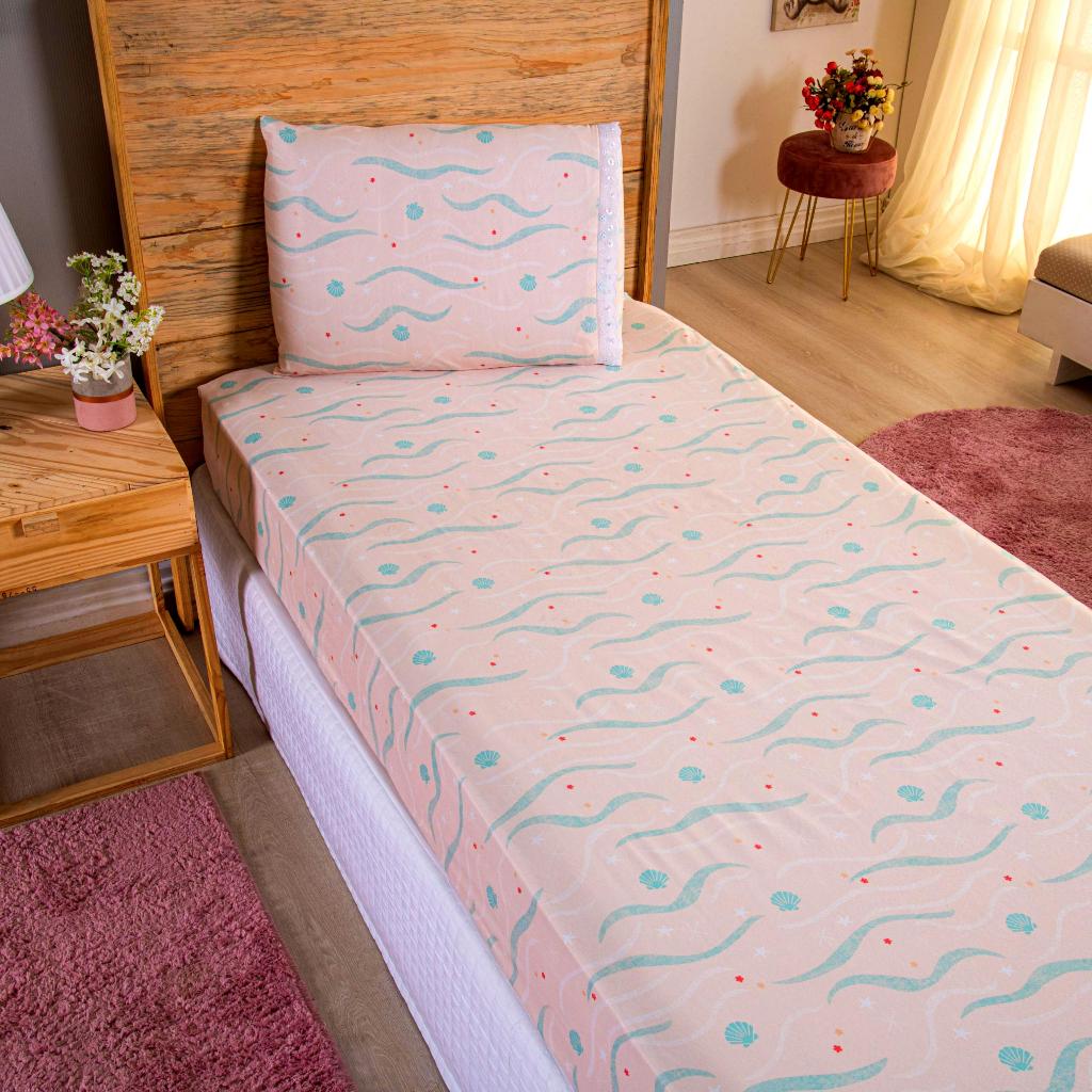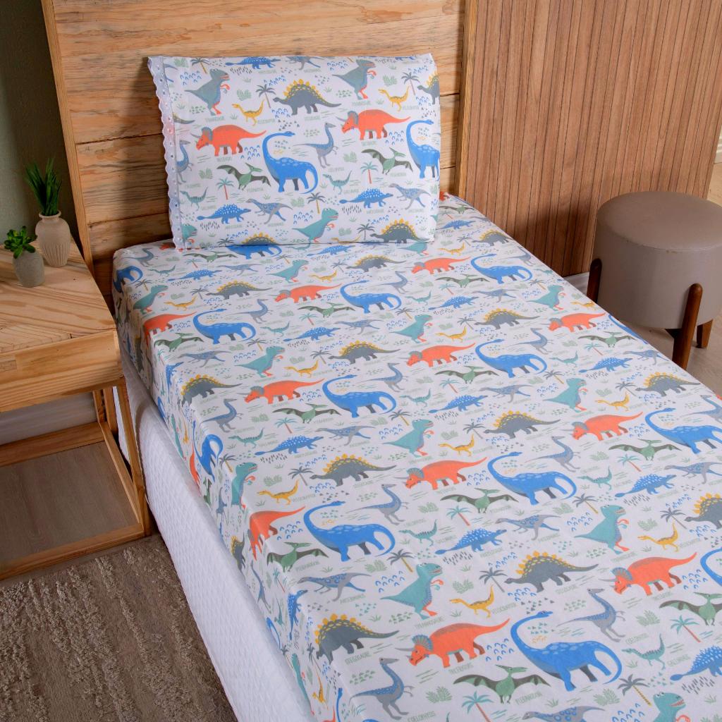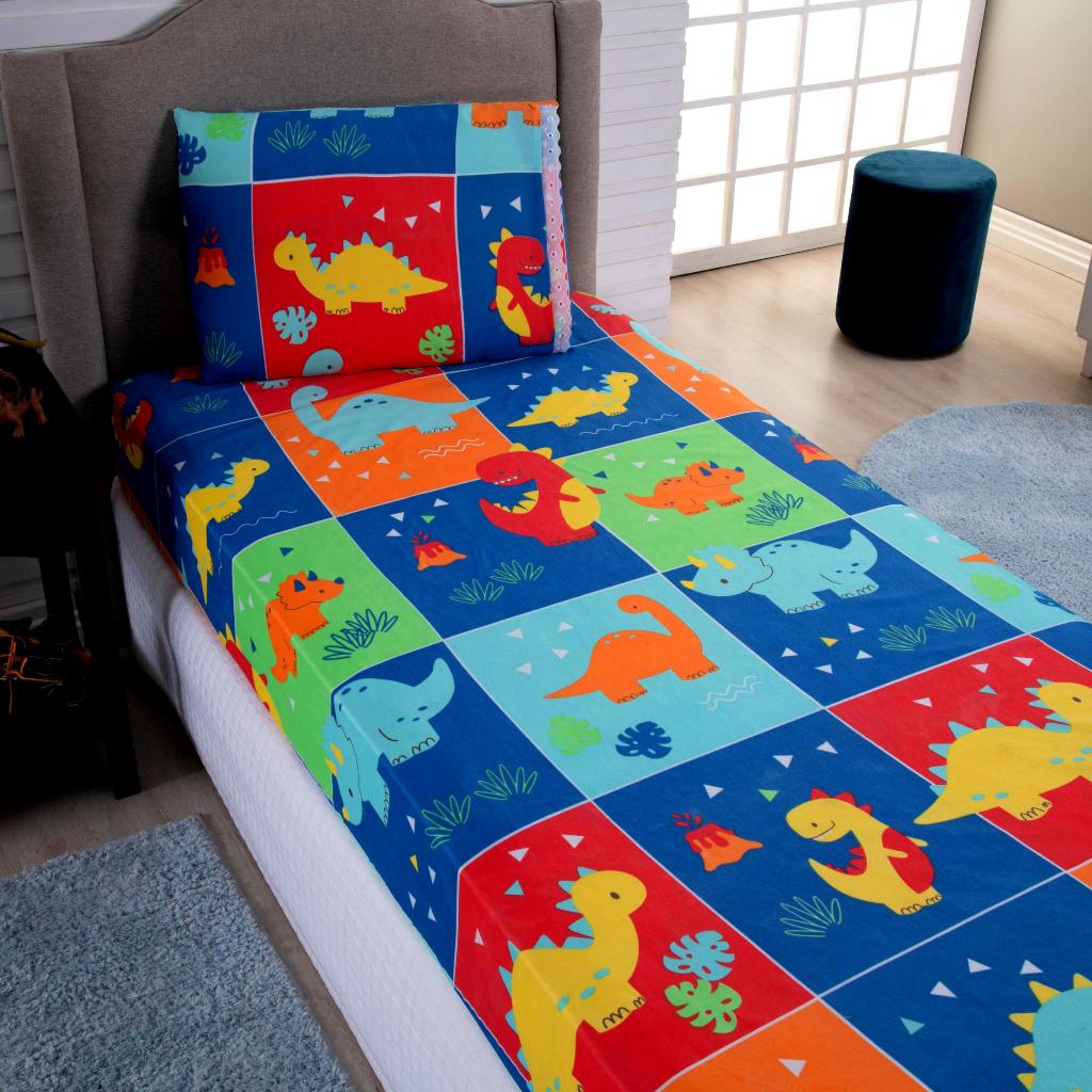 Lençol Solteiro 2 Peças Poliéster - Jogo de Cama Estampado Infantil Com Elástico Em toda Volta