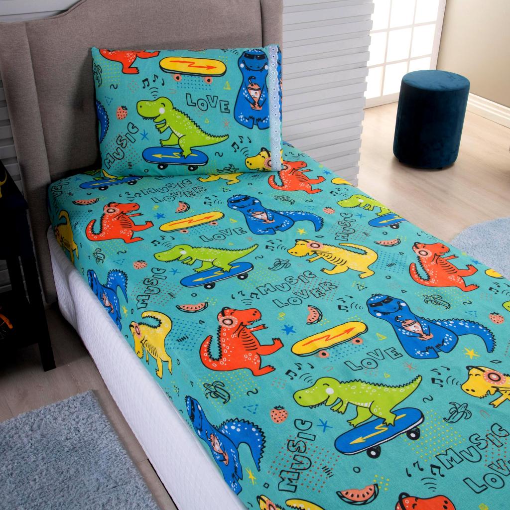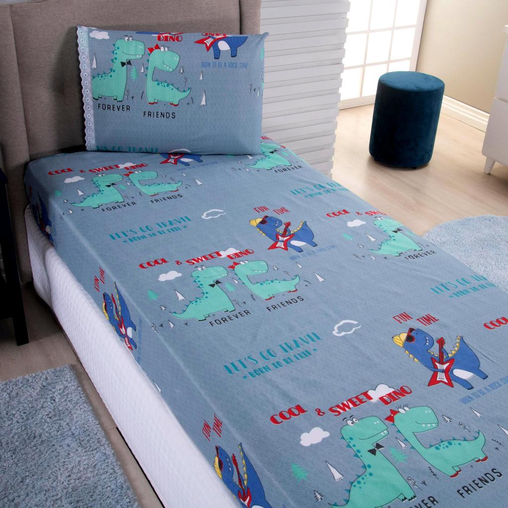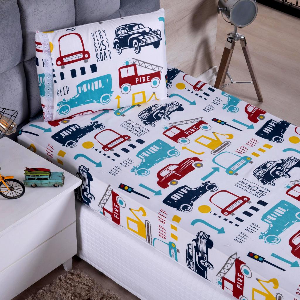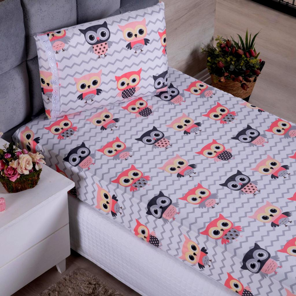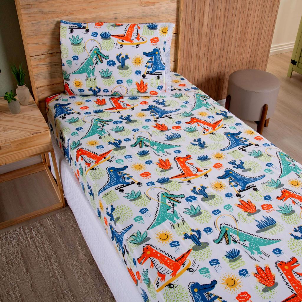 Lençol Solteiro 2 Peças Poliéster - Jogo de Cama Estampado Infantil Com Elástico Em toda Volta