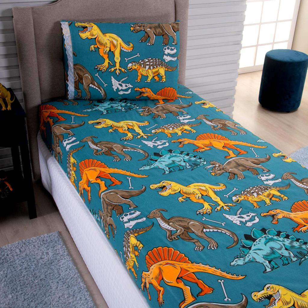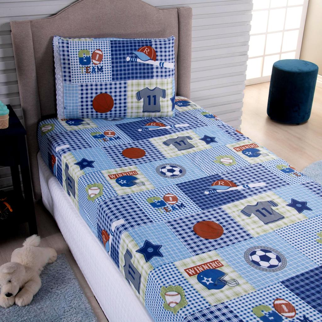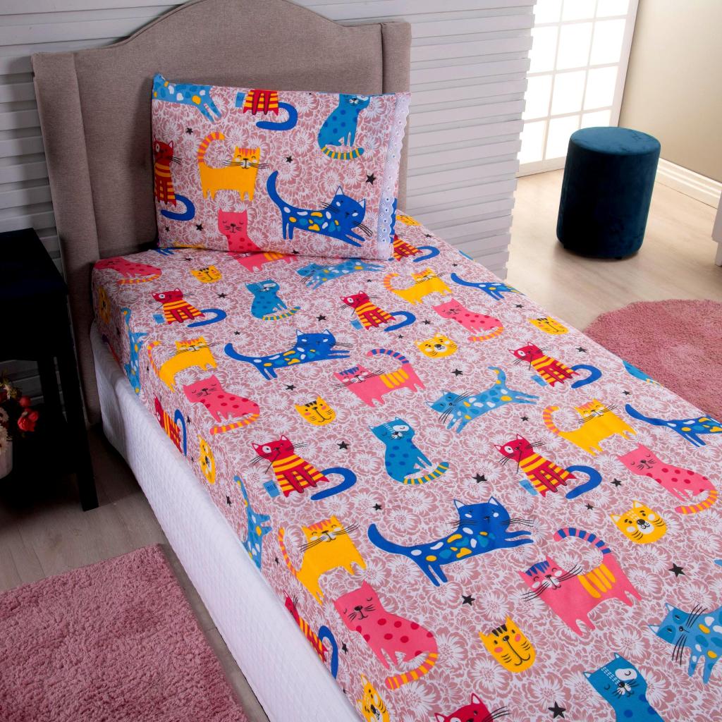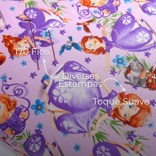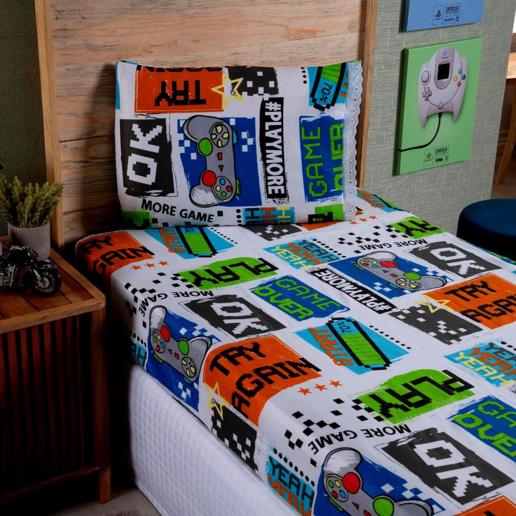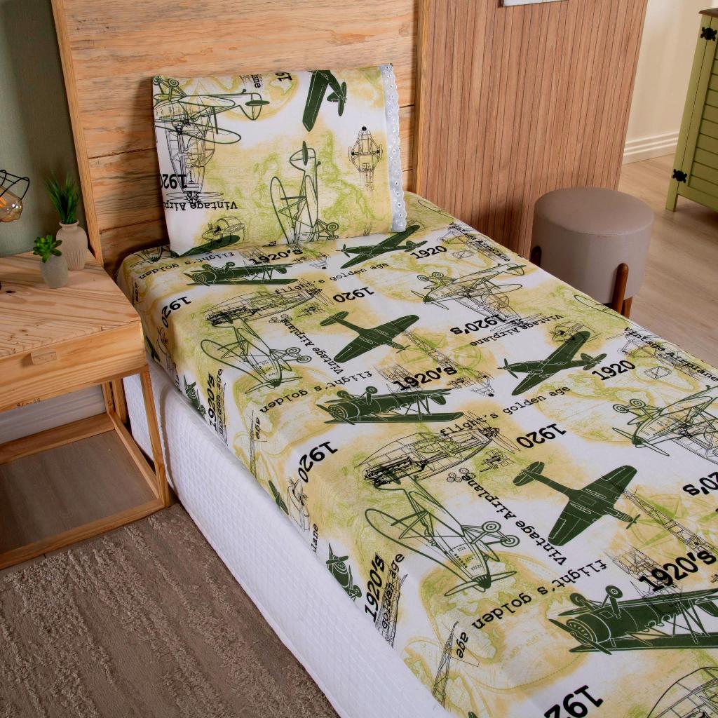 Lençol Solteiro 2 Peças Poliéster - Jogo de Cama Estampado Infantil Com Elástico Em toda Volta
