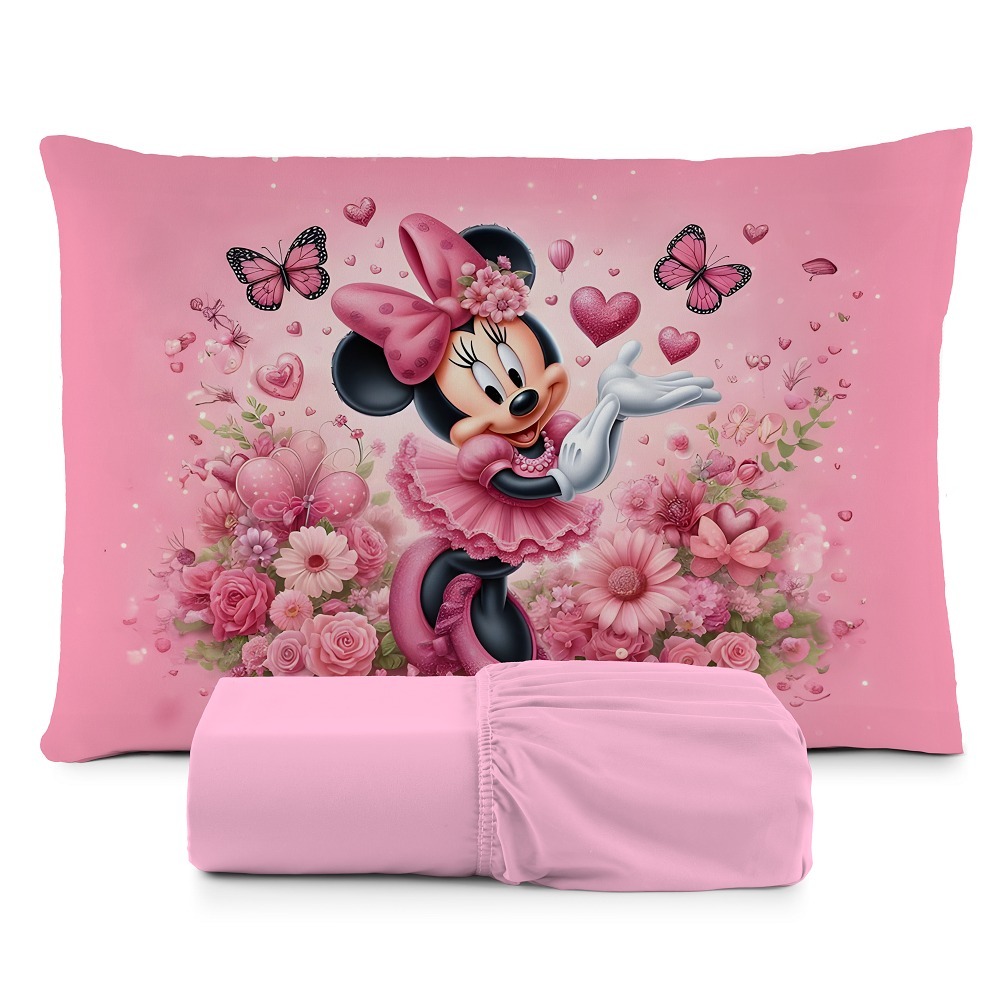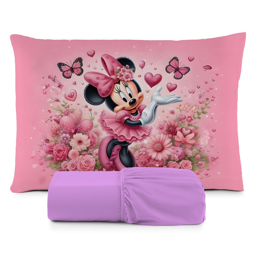 Lençol com Elastico Solteiro Infantil Menino Menina Fronha Estampada Várias Cores