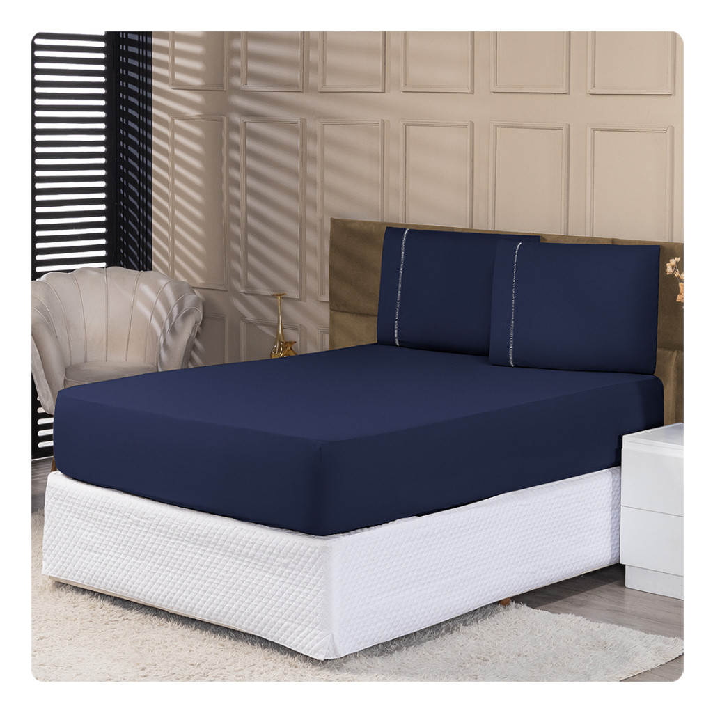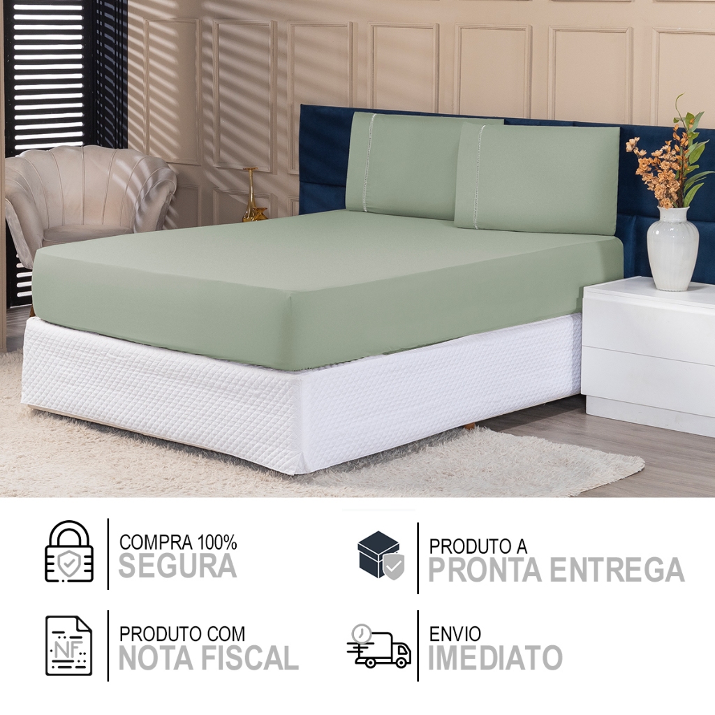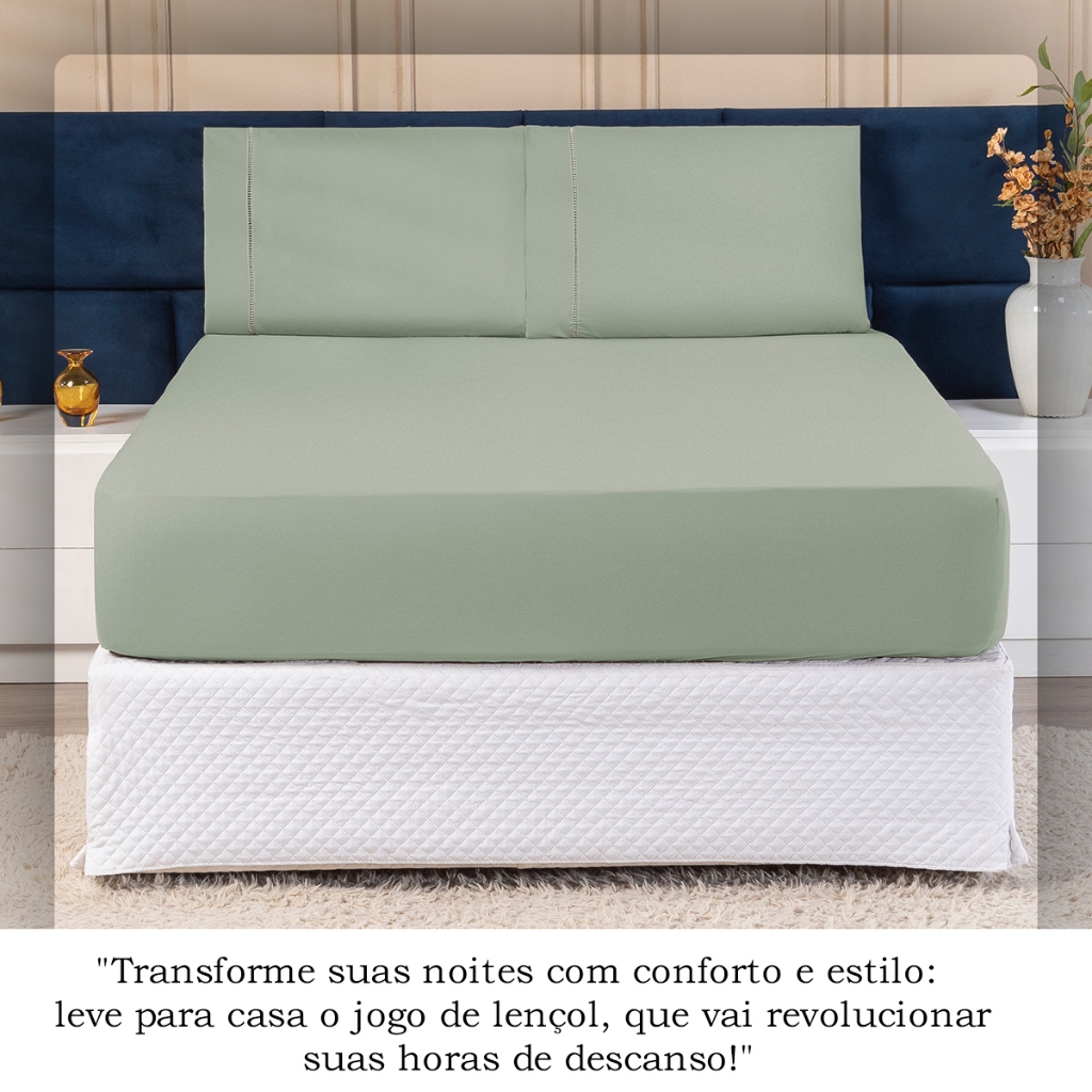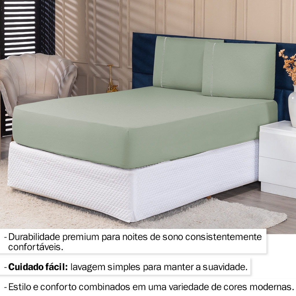 Lencol Queen 3 Peças Com Elástico 400 Fios Ponto Palito