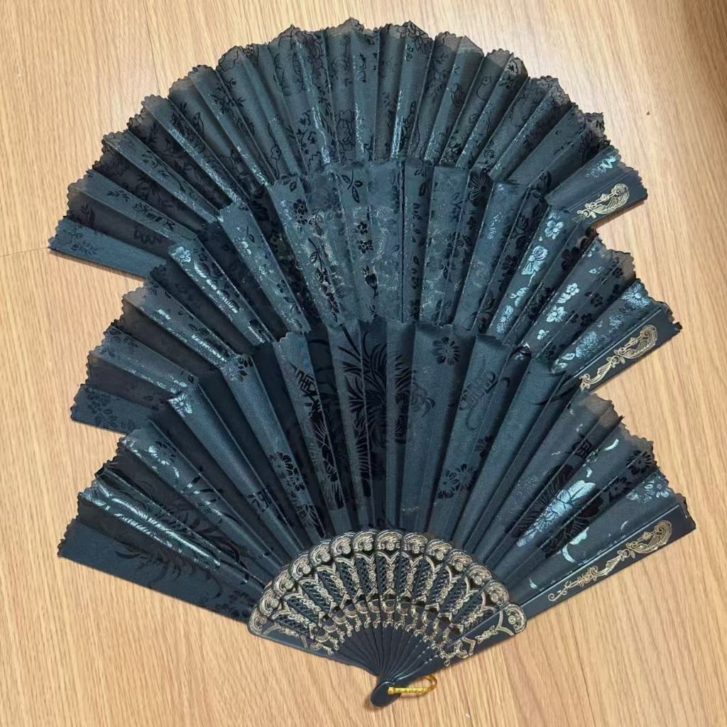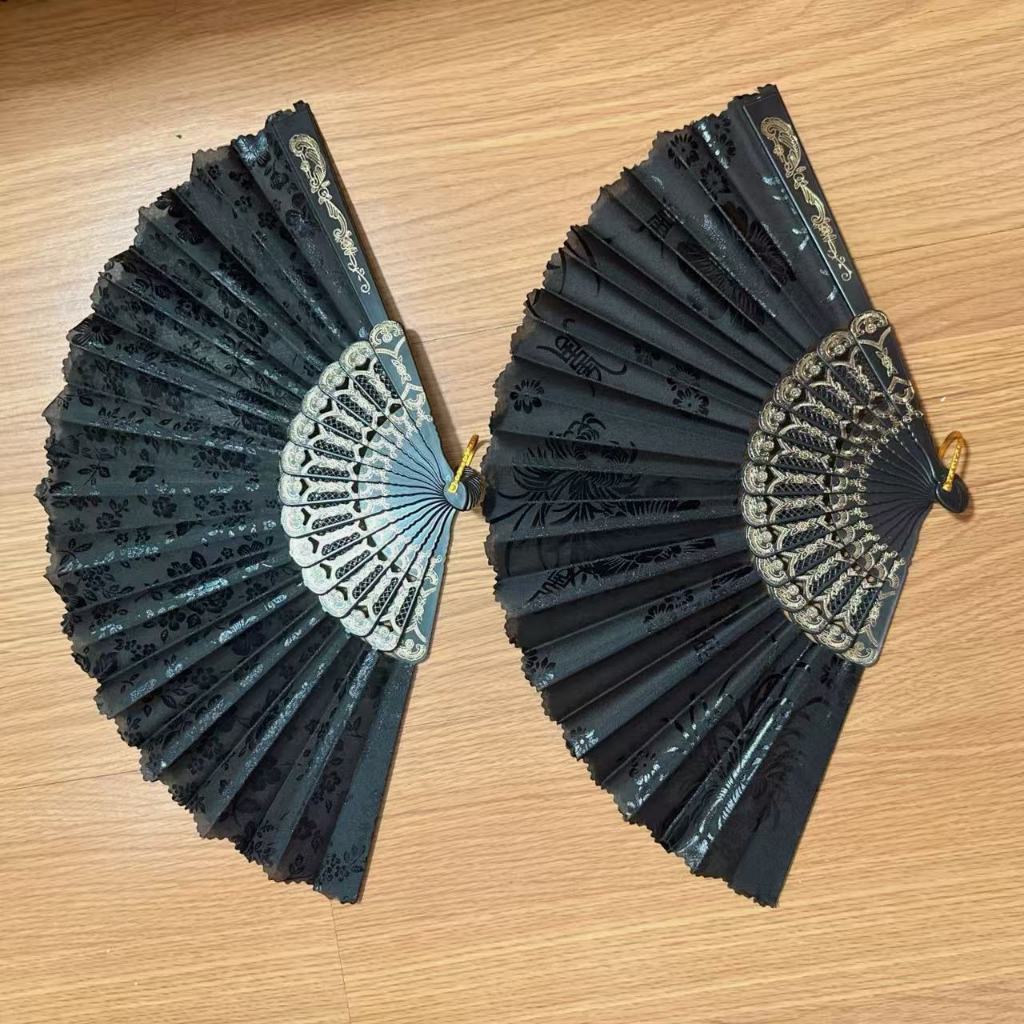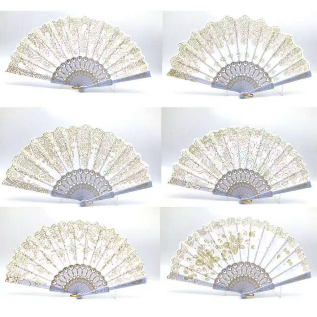 Leque branco/preto com desenho dourado / prata