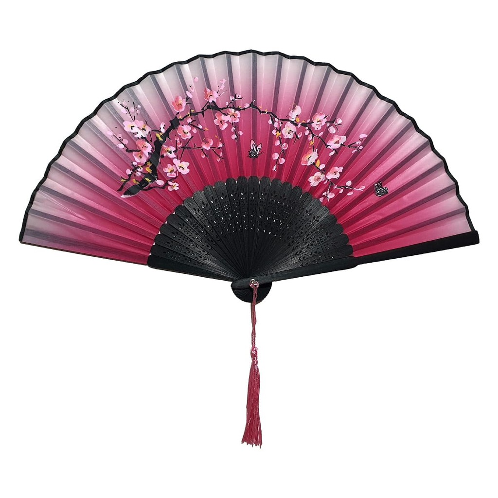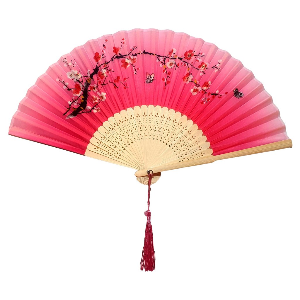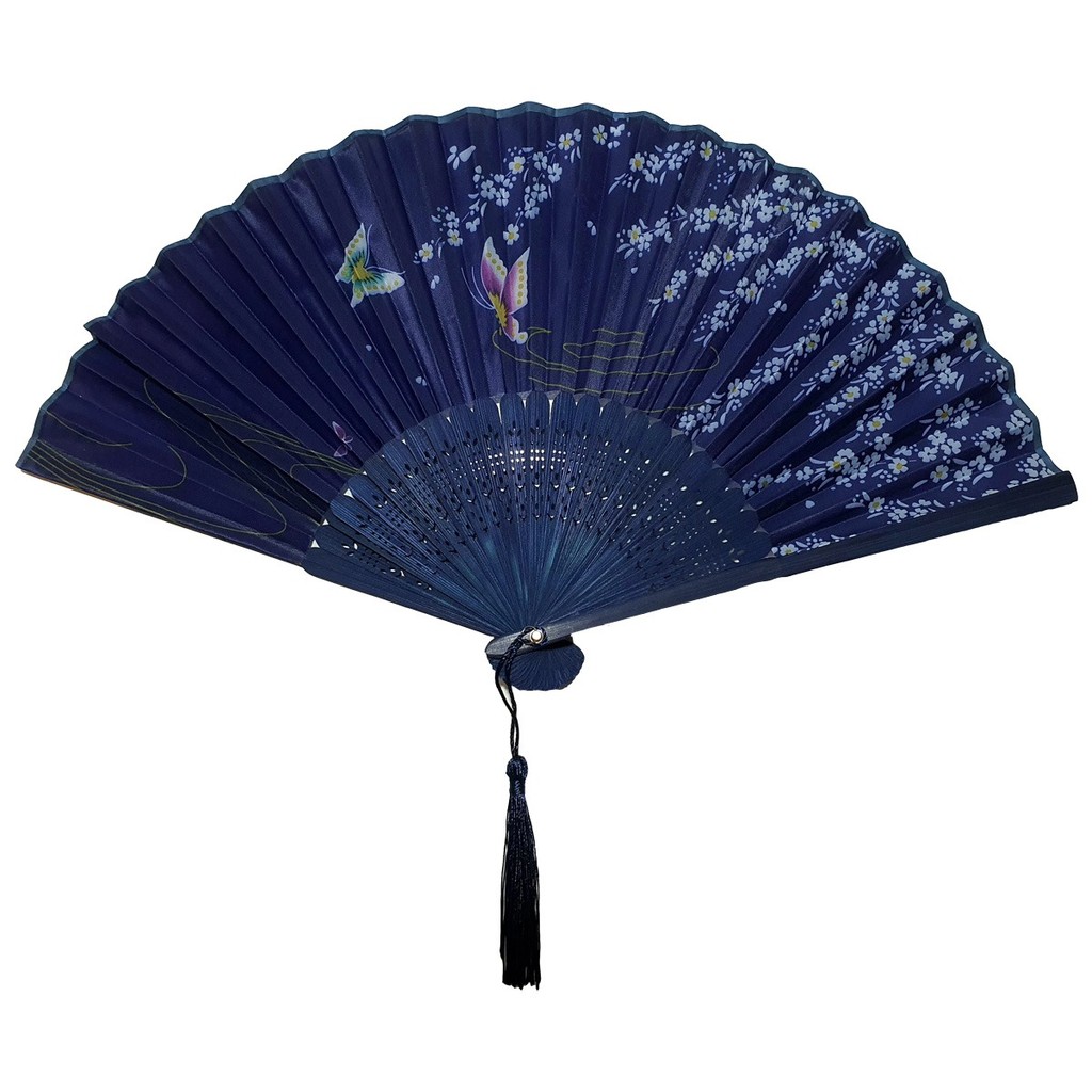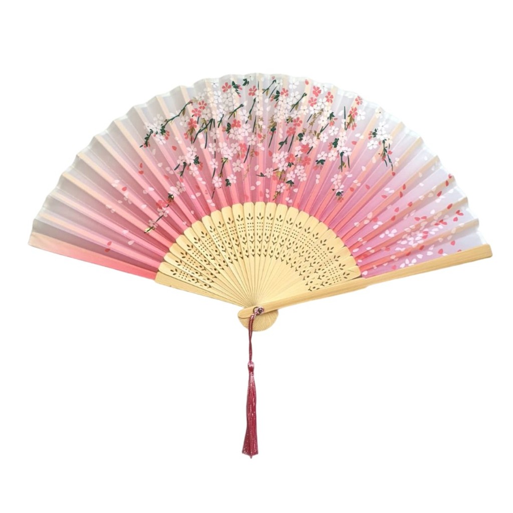 Leque de Mão Japonês Bambu Madeira Tecido