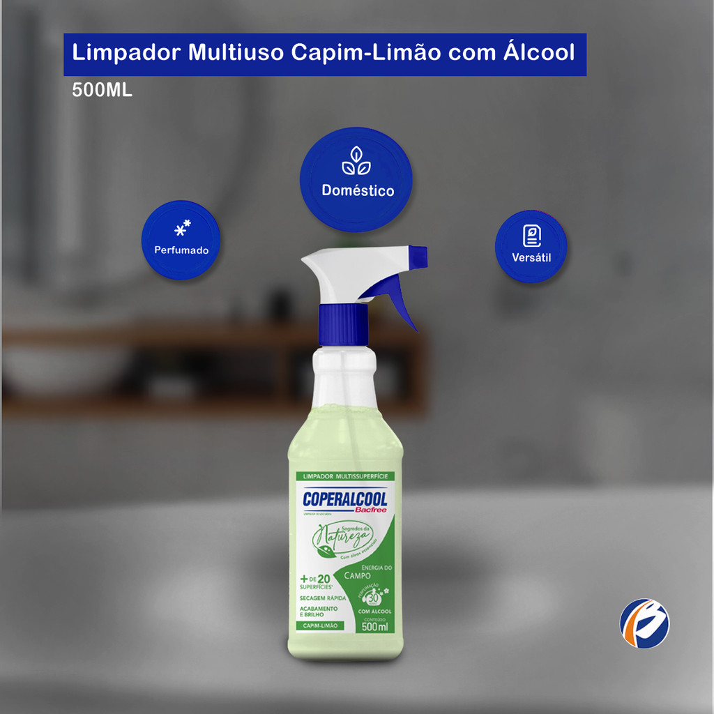 Limpador Multiuso Capim-Limão Pulverizador 500ml Coperalcool Bacfree