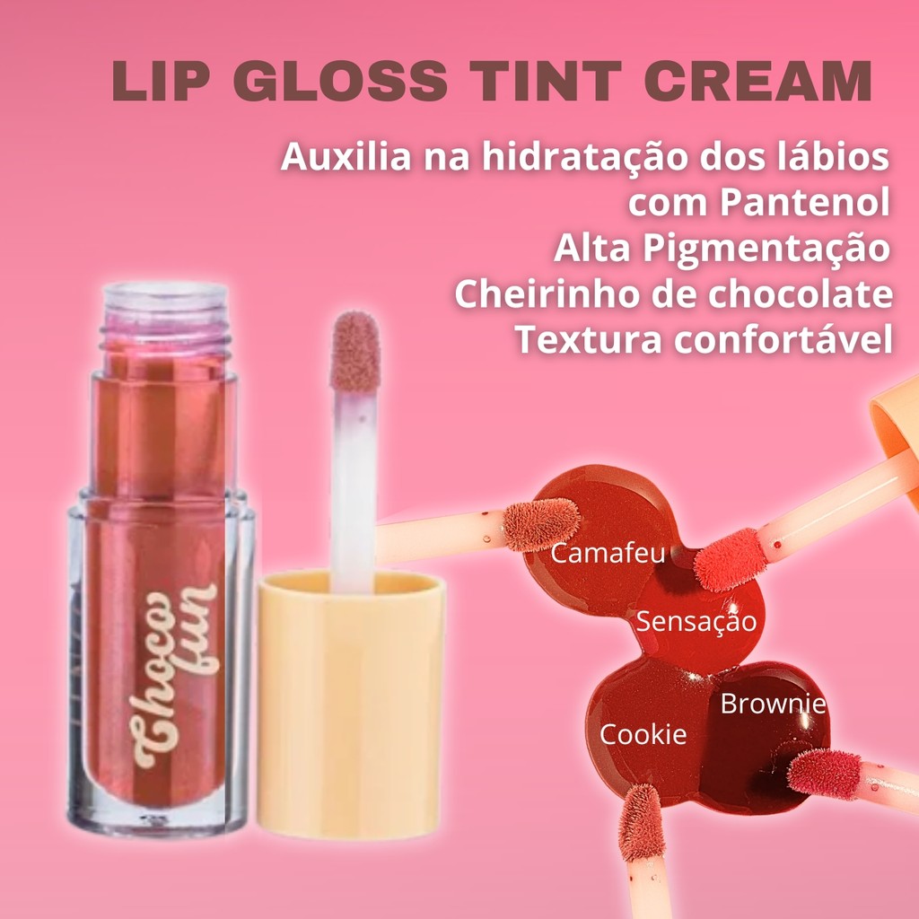 Lip Gloss Labial Tint Cream Cheirinho de Chocolate Alta Pigmentação Confortável Choco Fun Fenzza