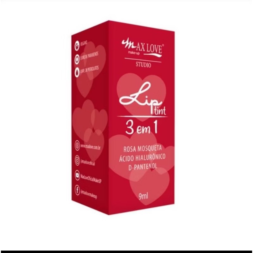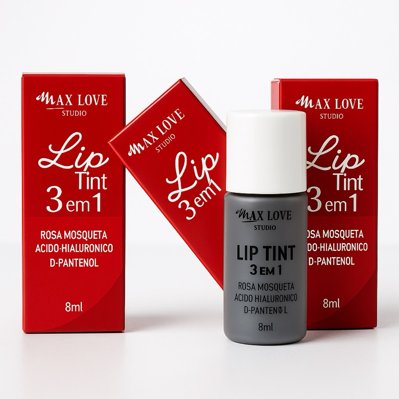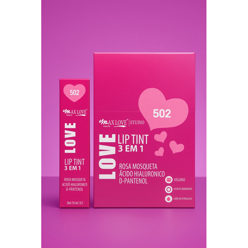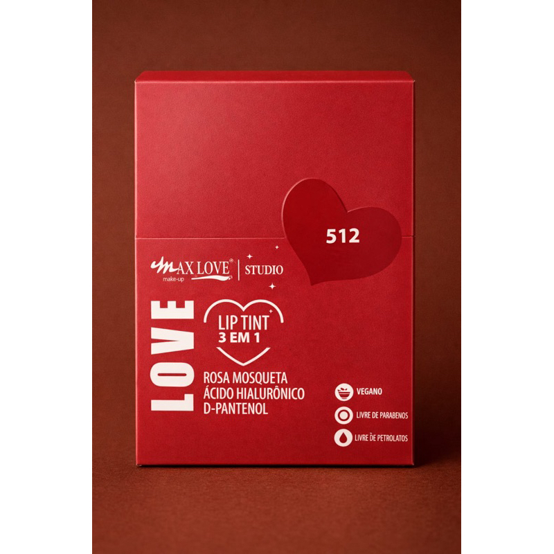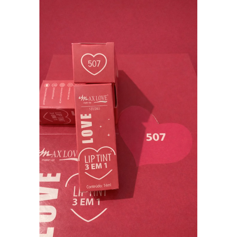 Lip Tint Vermelho 3 em 1 Max Love Cor 505 /500 vermelho rosado – Lábios, Bochechas e Olhos