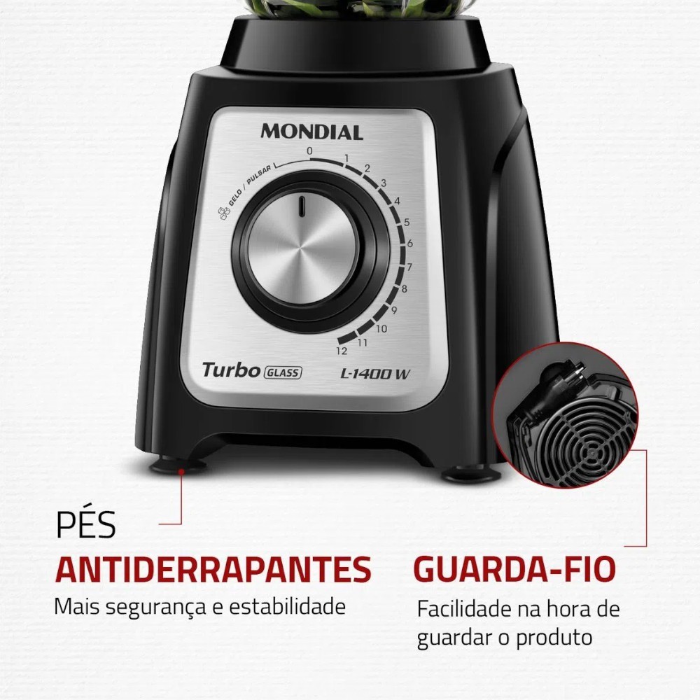 Liquidificador 12 velocidades 1400W Turbo Glass com copo de vidro - L1400-GI - Mondial