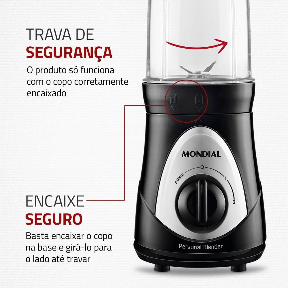 Liquidificador Portátil Mondial Personal Blender 127v 750mL Preto Prata DG-01