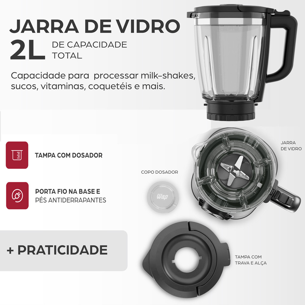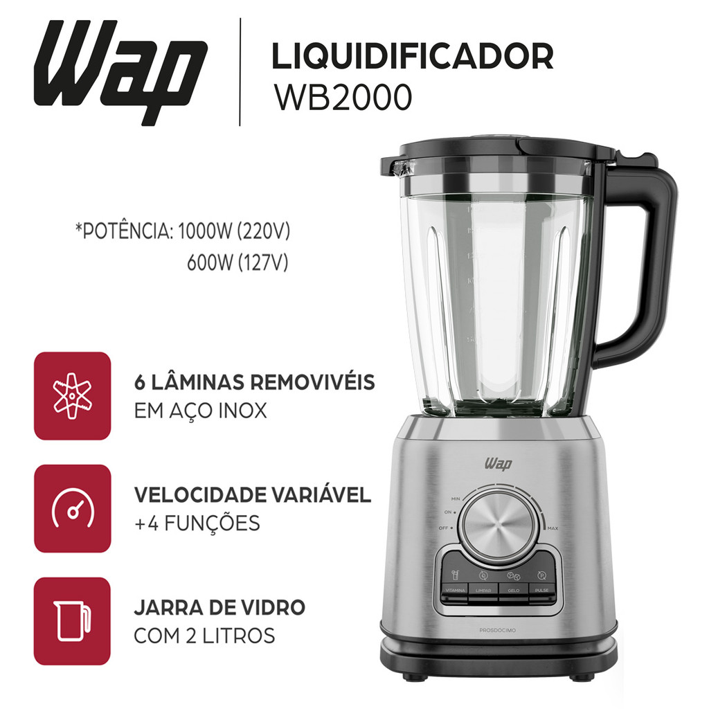 Liquidificador Prosdócimo WB2000 Inox Com Jarra de Vidro 2L Lâminas Removível WAP