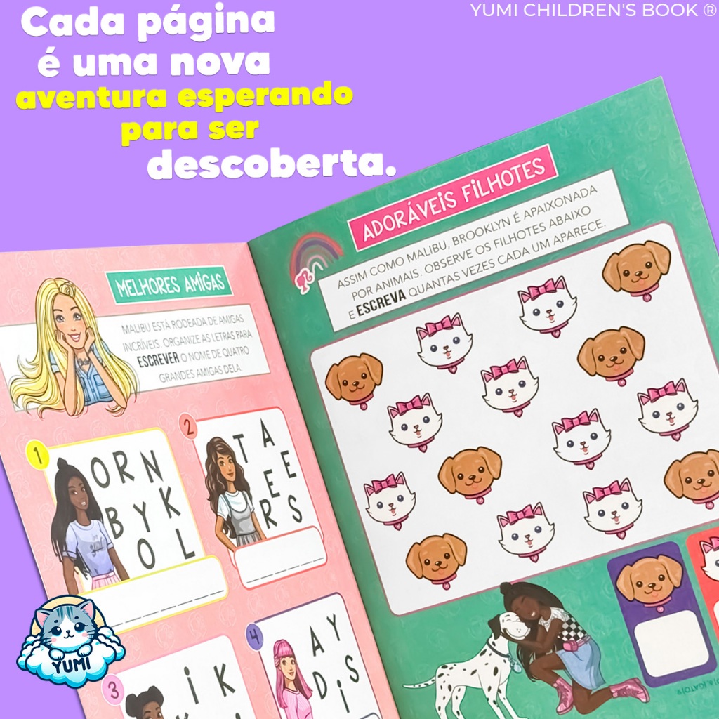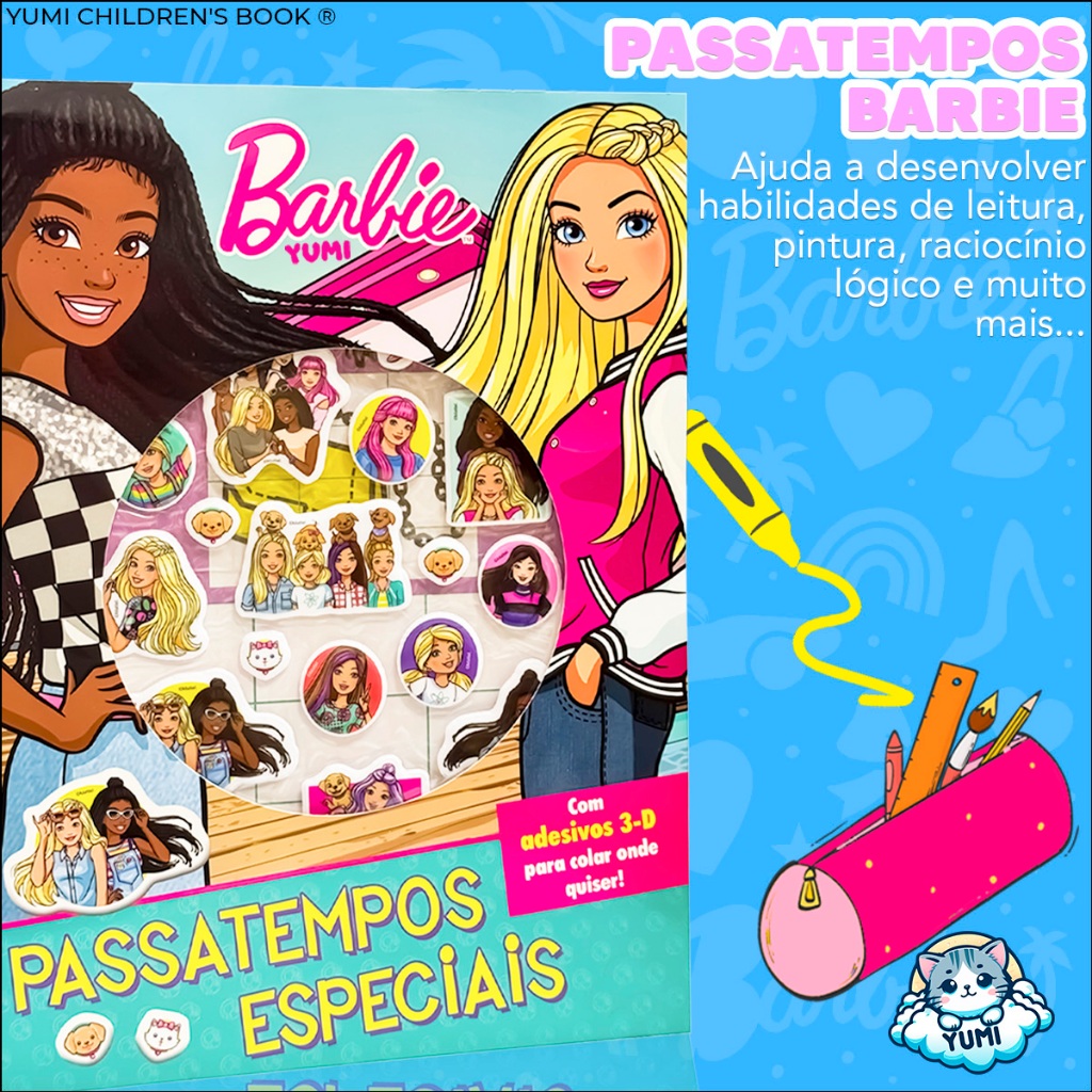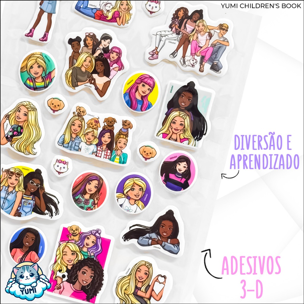 Livro Barbie Infantil com Adesivos Fofinhos 3D – Passatempos e Atividades Educativas para Meninas