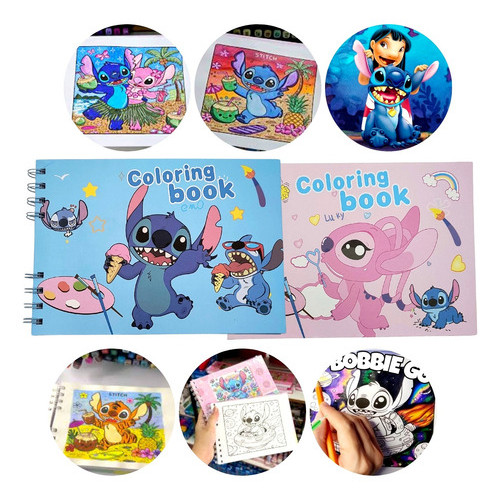 Livro Caderno de Colorir Pinturas Kids Bob Good Lilo Stich Capa Dura