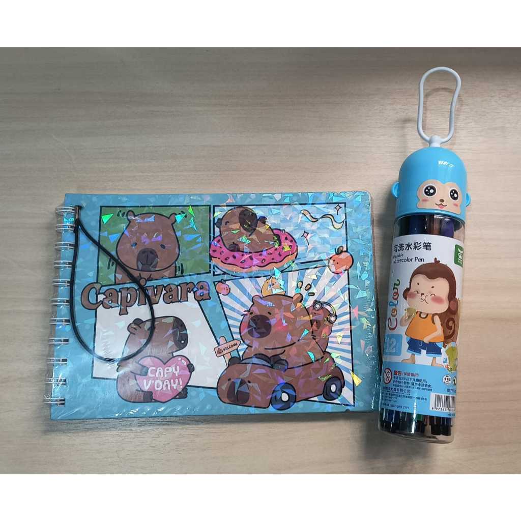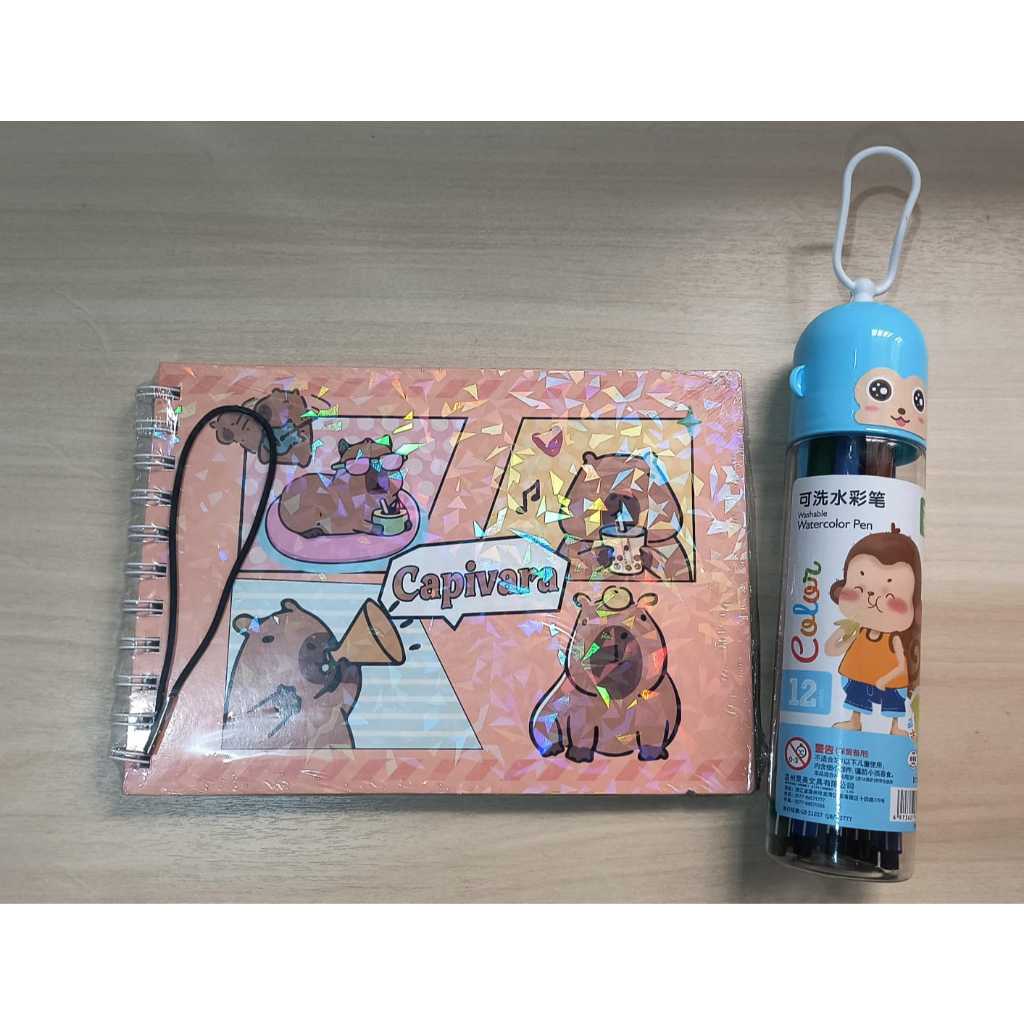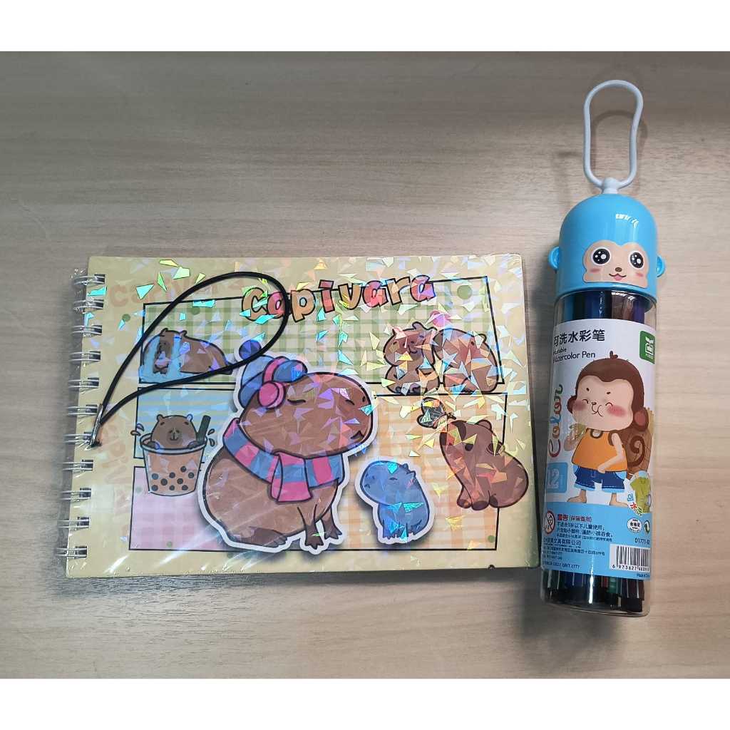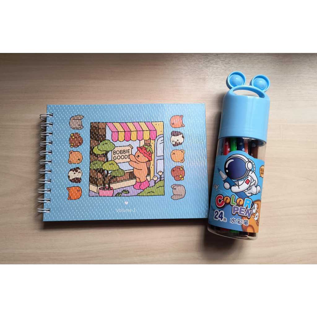 Livro Colorir 100 Folhas Caderno de Desenho Pintura Coloring Book Infantil + Canetinhas 24 Cores