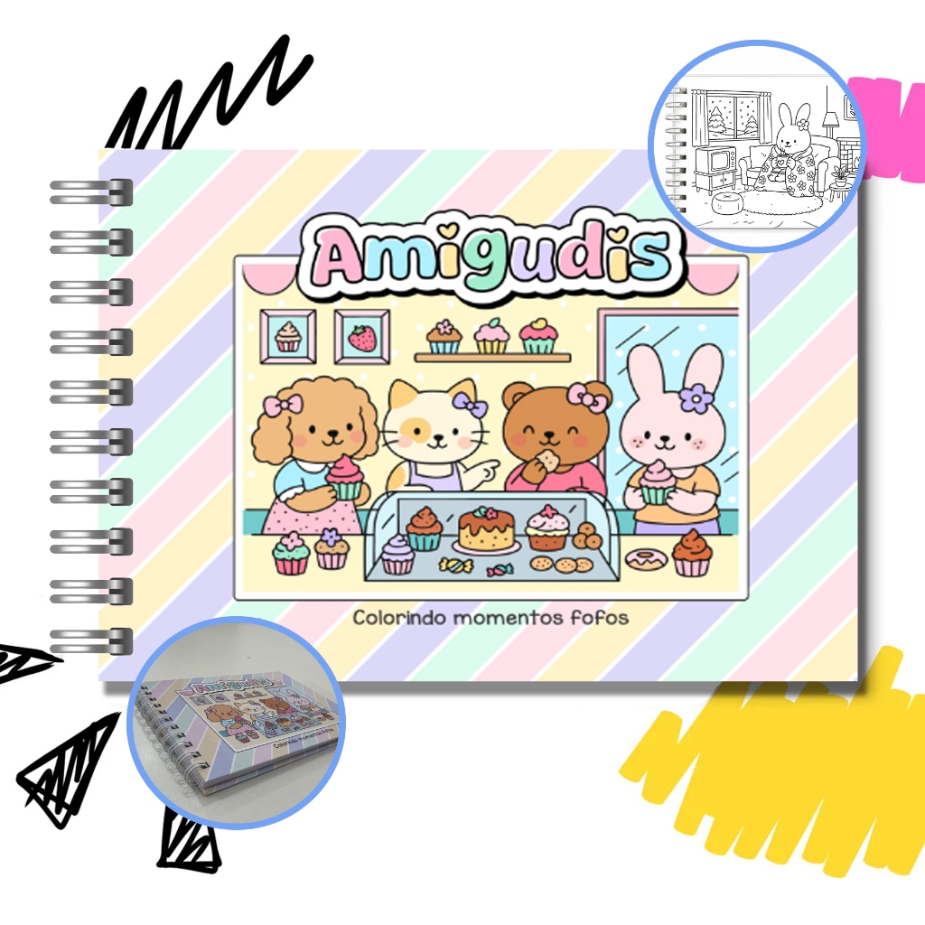 Livro Colorir Amigudis Diversos Desenhos Capa Dura Folha Grossa 180g