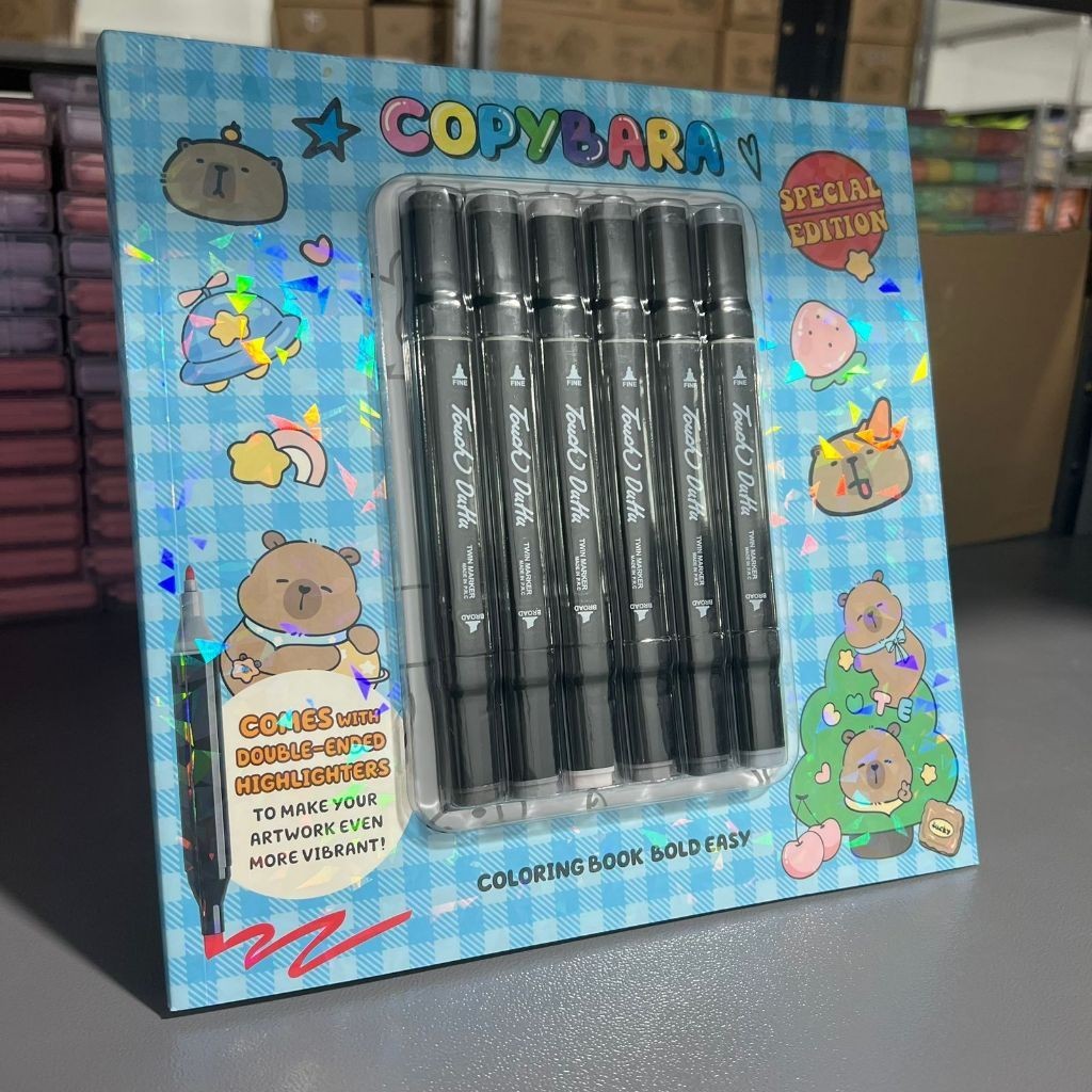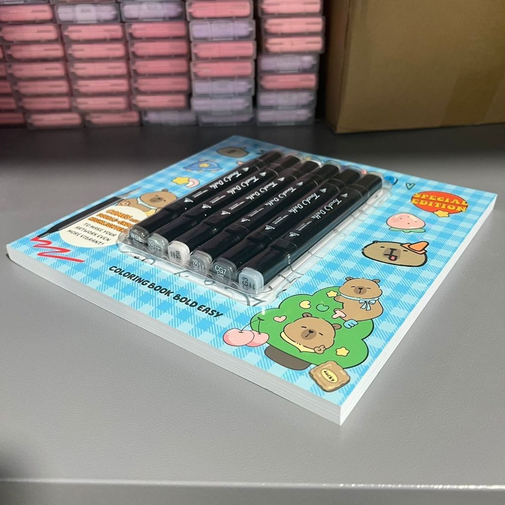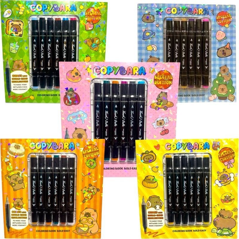 Livro Colorir Capivara + 6 Cores canetas Touch Dupla Ponta 2EM 1 Cute & Comfy Caderno de Pintura