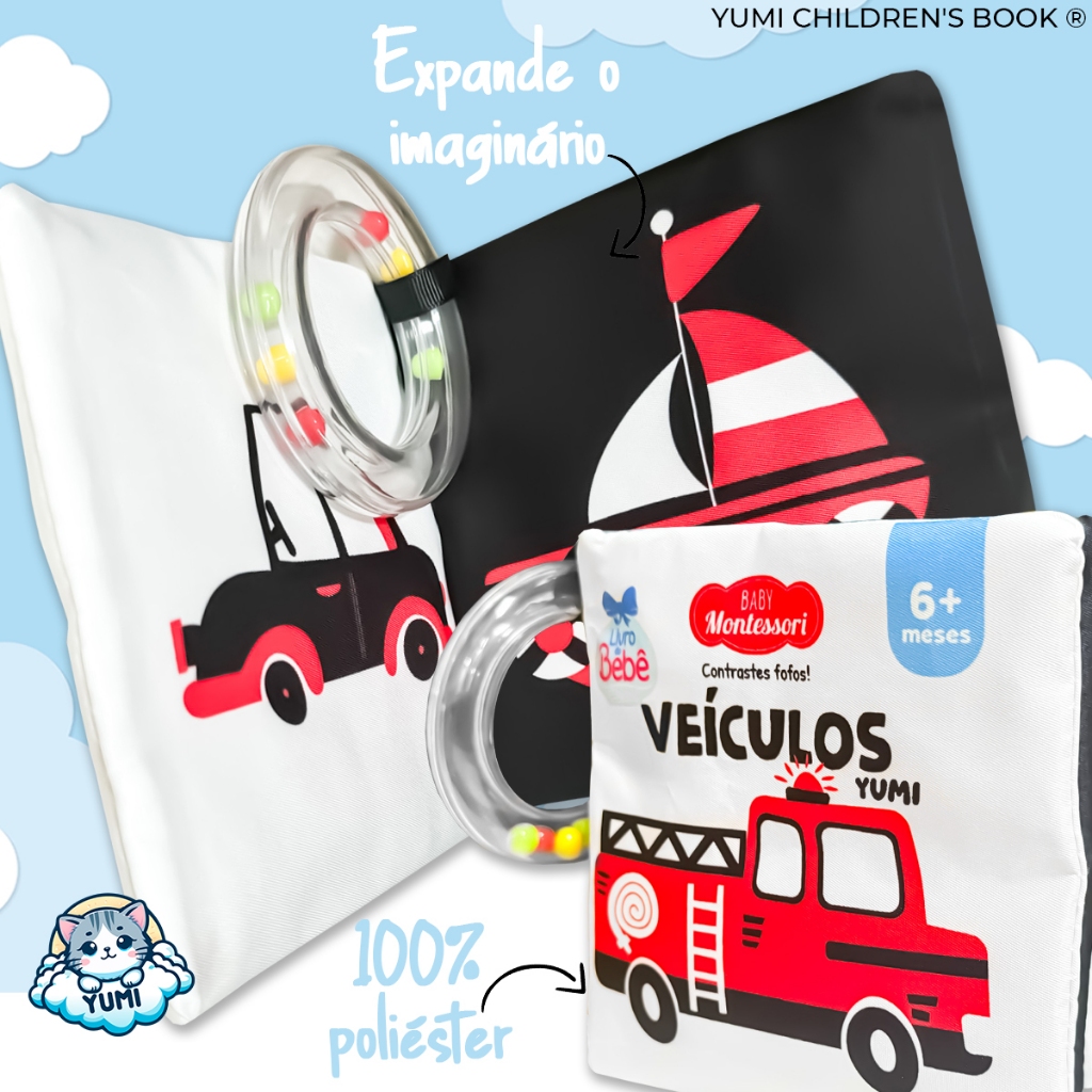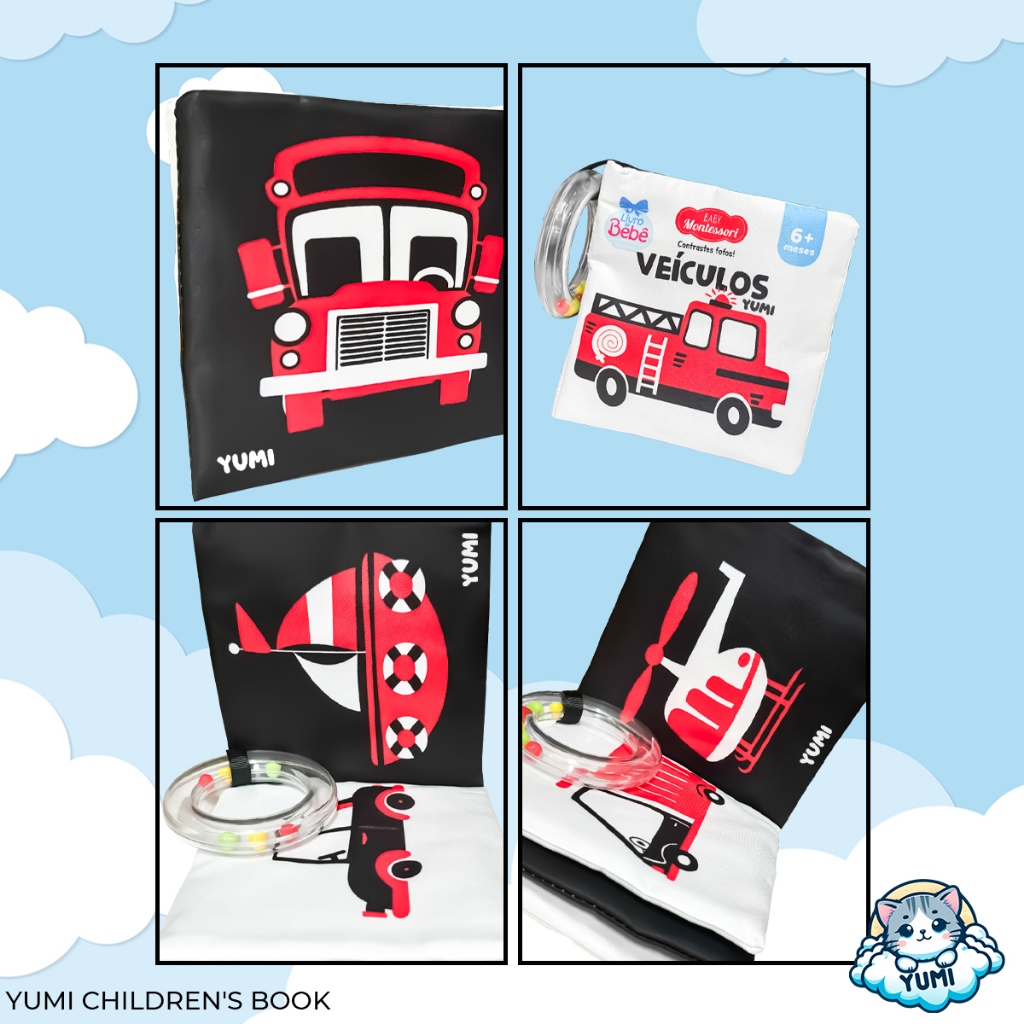 Livro De Pano Macio Para Bebês Alto Contraste Veículos Preto E Branco Sensorial Brinquedo Bebê Chocalho