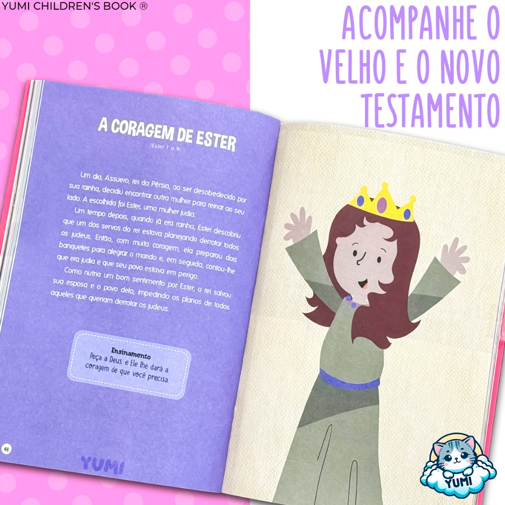 Livro Infantil Bíblia para Meninas Bíblia Rosa Infantil + De 50 Histórias Da Bíblia Com Lindos Ensinamentos